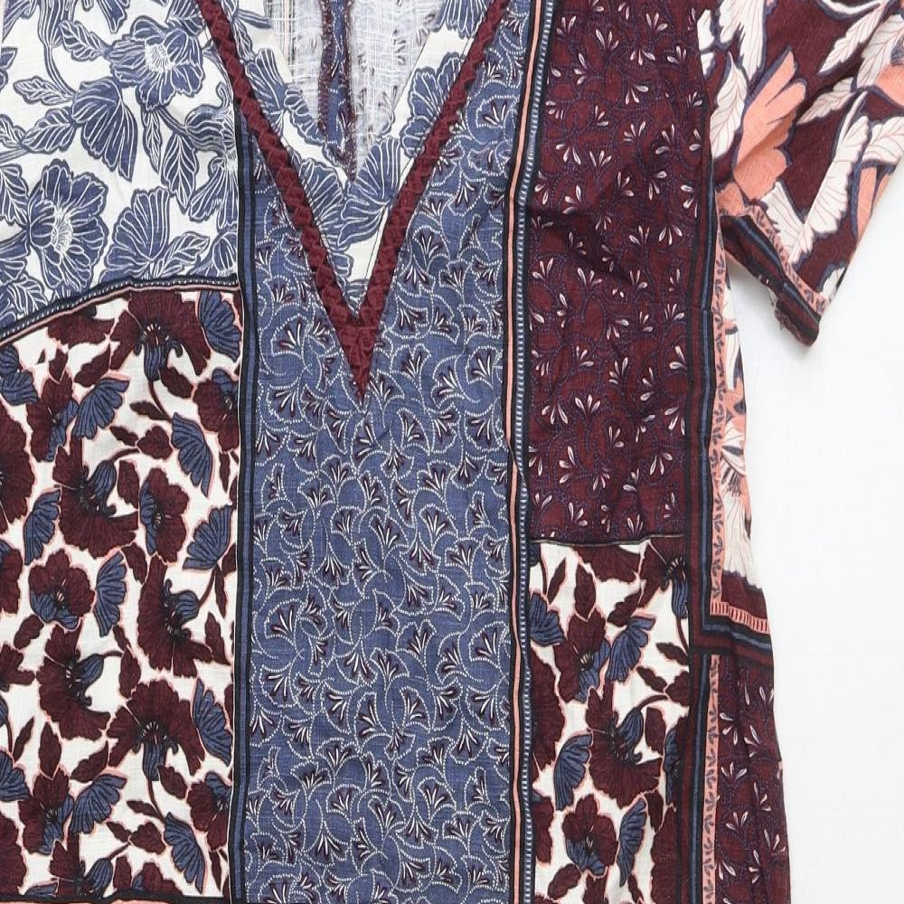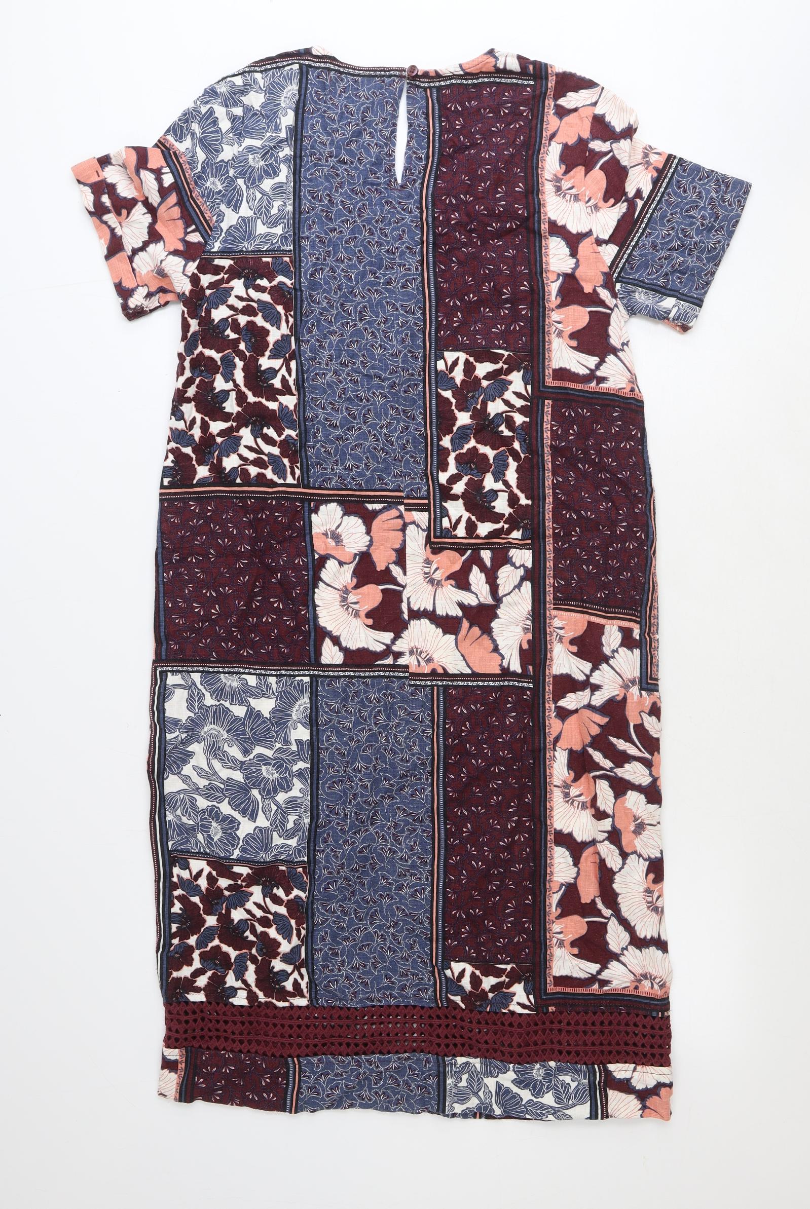 NEXT Womens Multicoloured Geometric Linen Shift Size 10 V-Neck Button