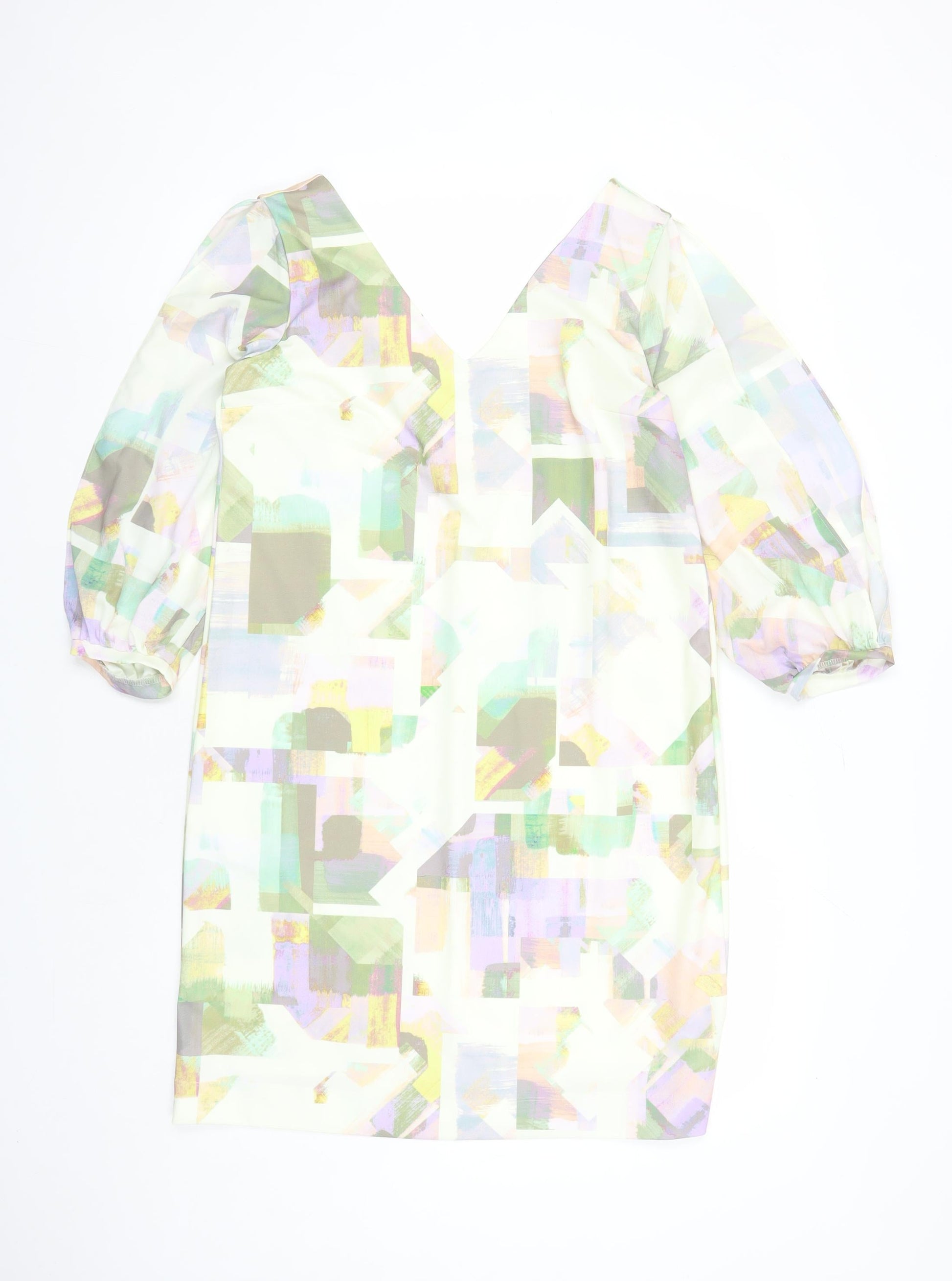 NEXT Womens Multicoloured Geometric Polyester A-Line Size 10 V-Neck Pullover - Cold Shoulder