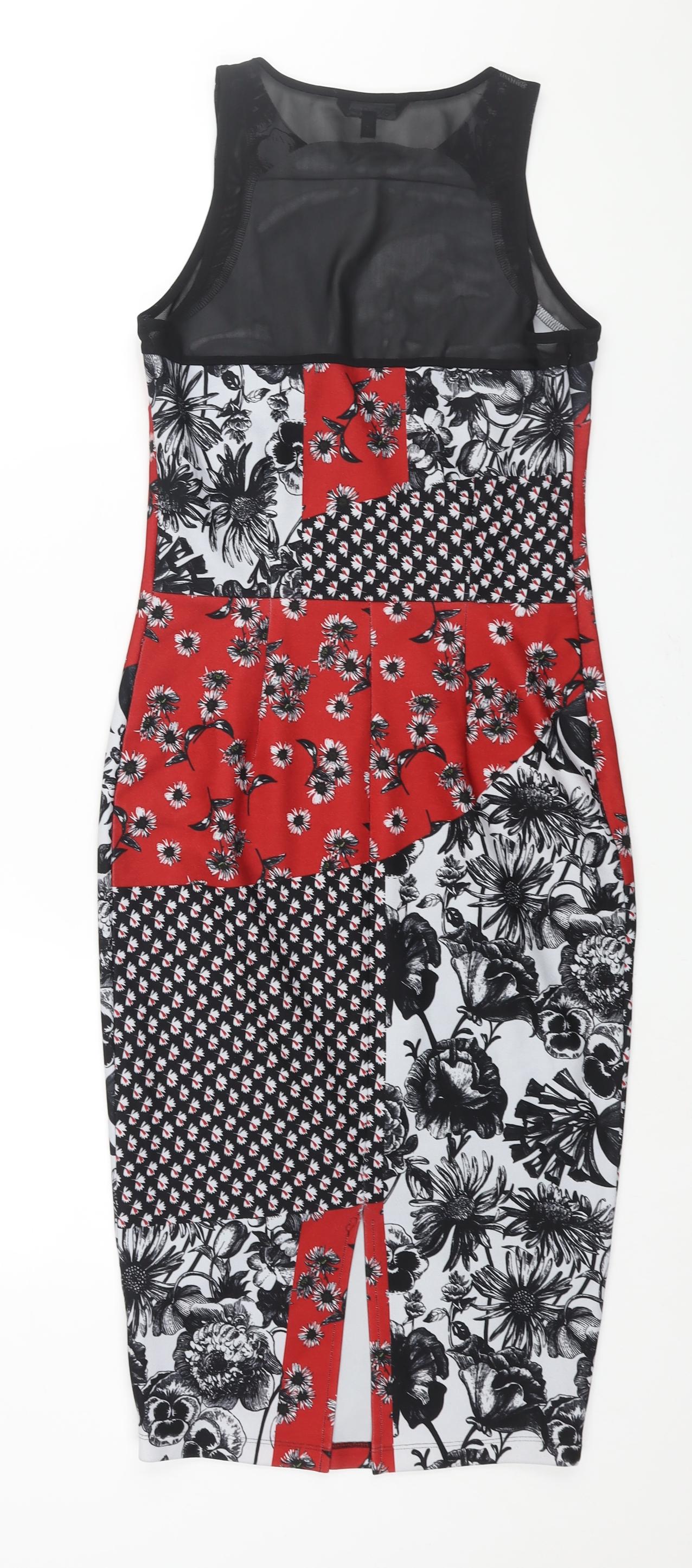 NEXT Womens Multicoloured Geometric Polyester Bodycon Size 8 Round Neck Zip