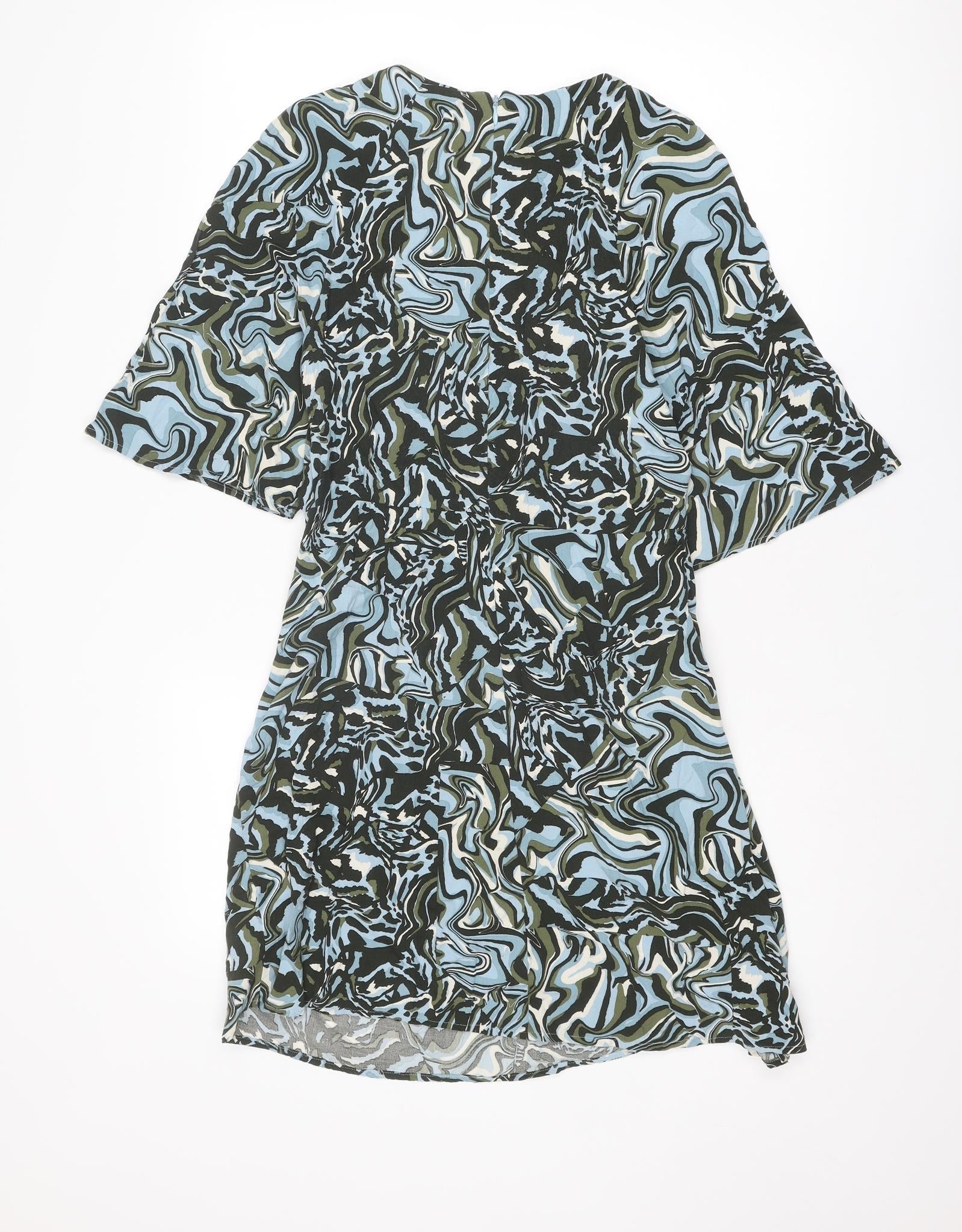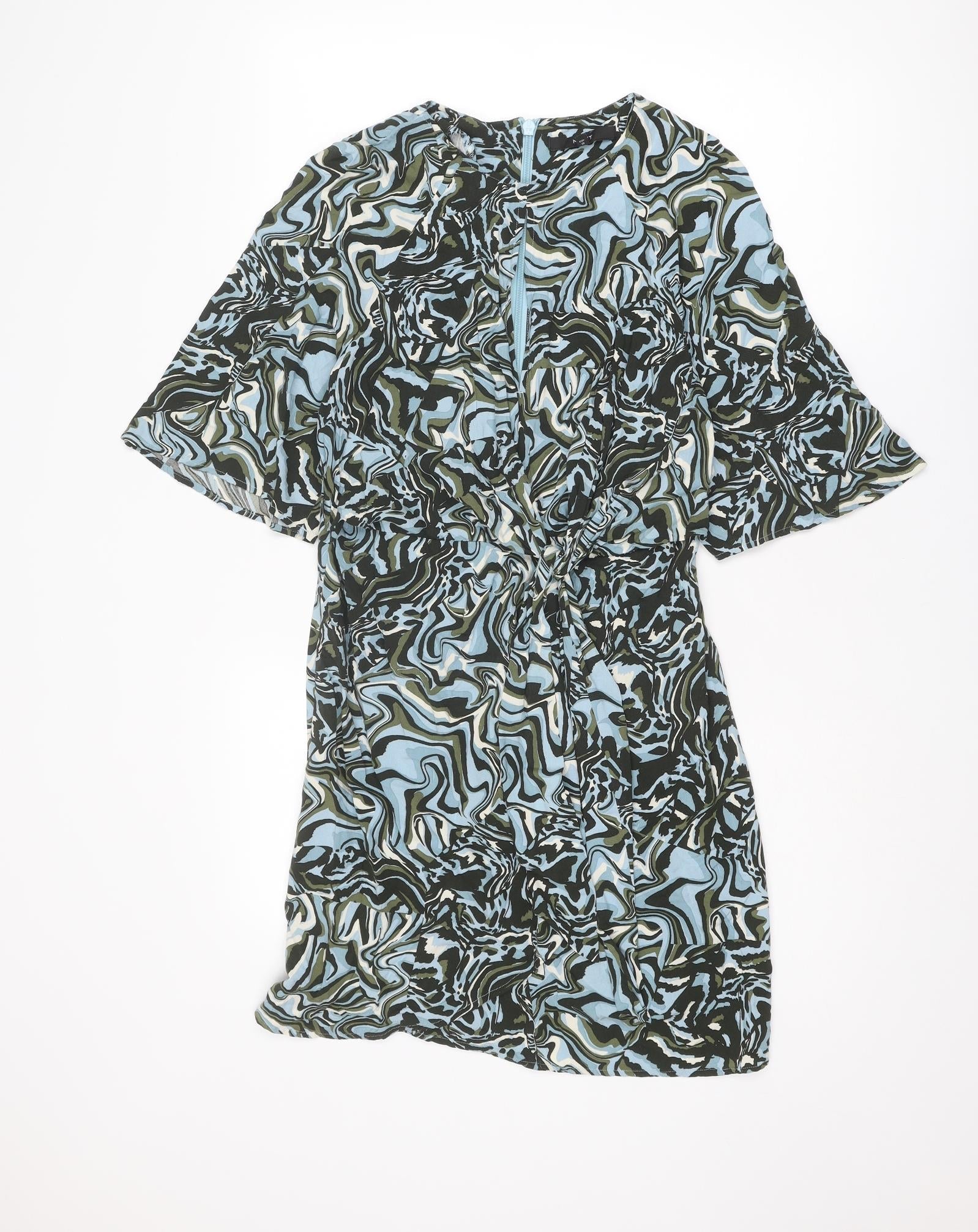 NEXT Womens Multicoloured Geometric Viscose A-Line Size 10 Round Neck Zip
