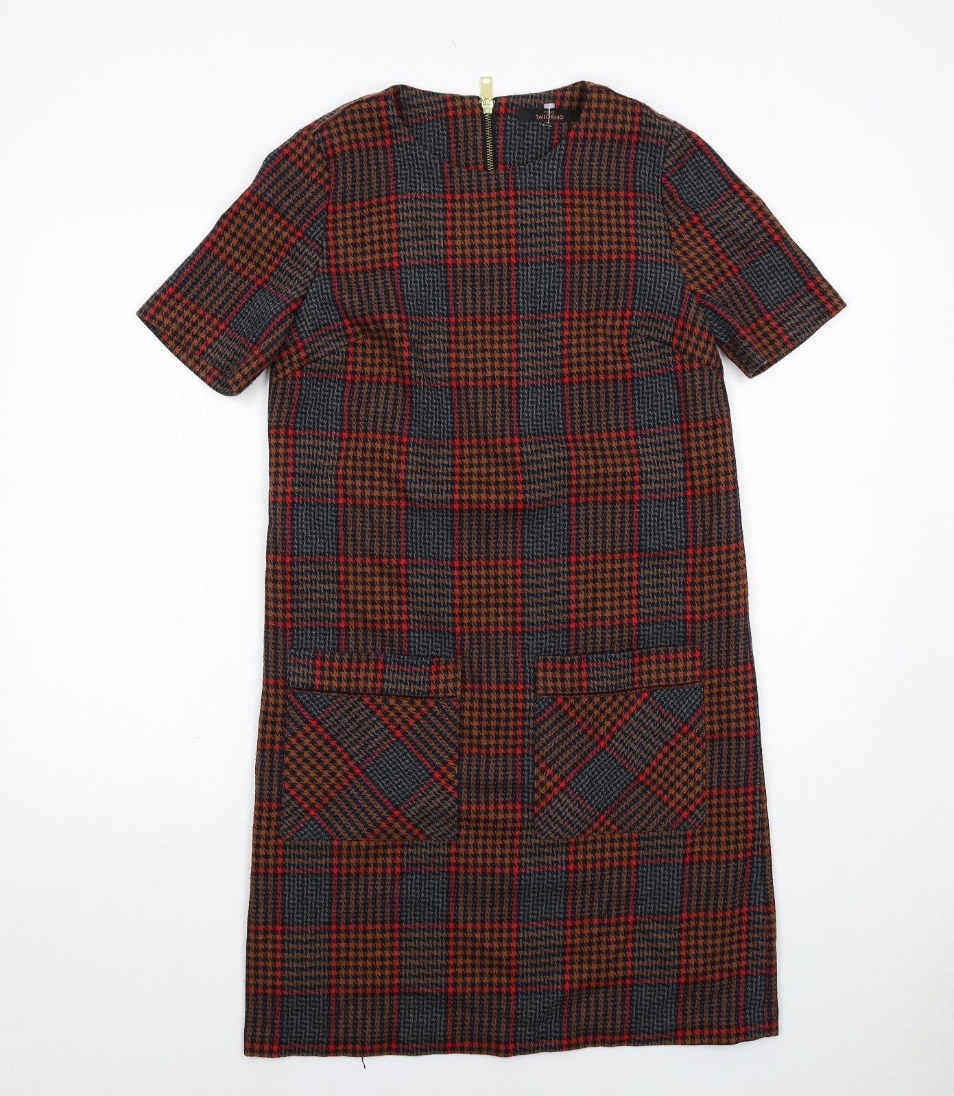 NEXT Womens Multicoloured Plaid Polyester Shift Size 8 Boat Neck Zip