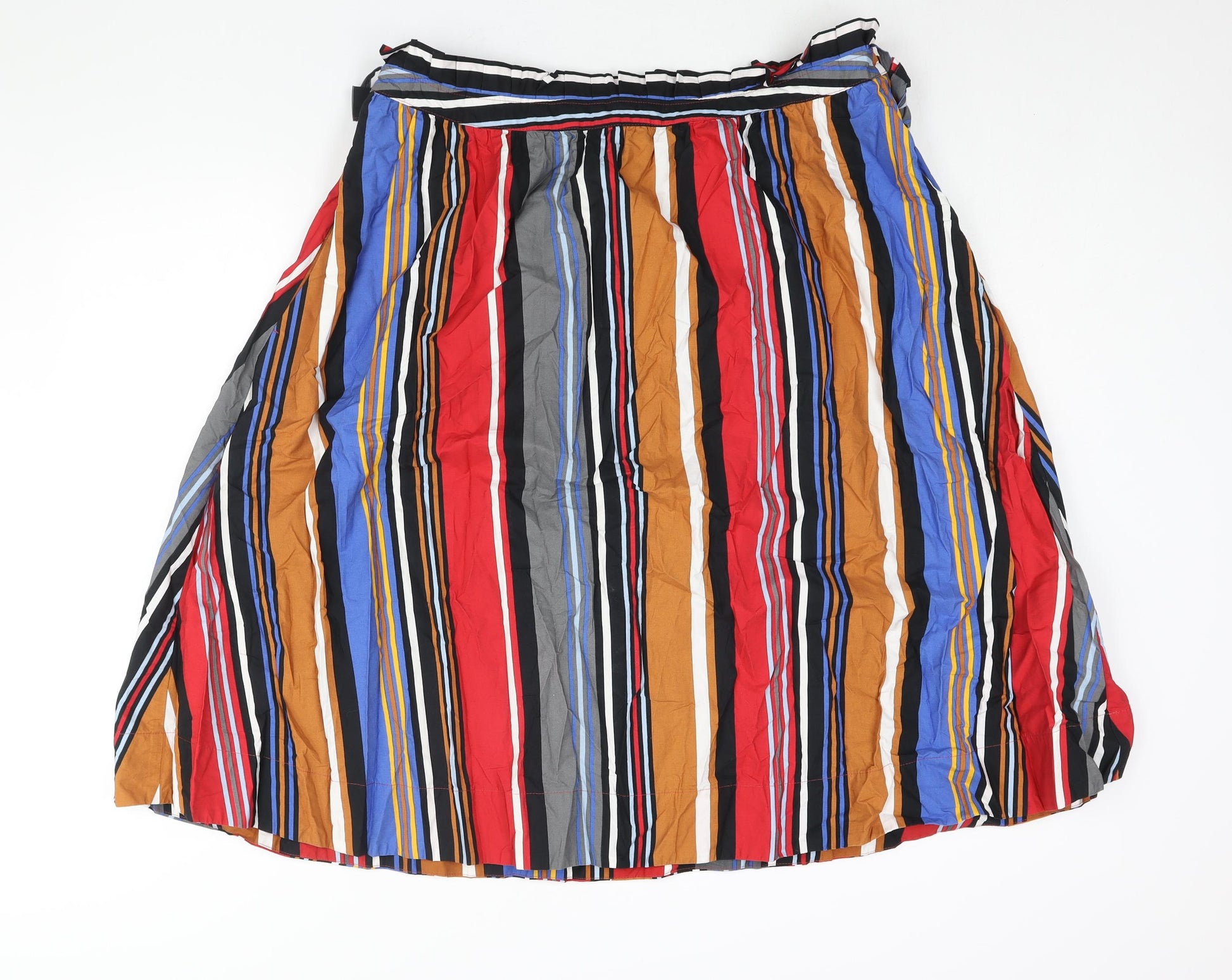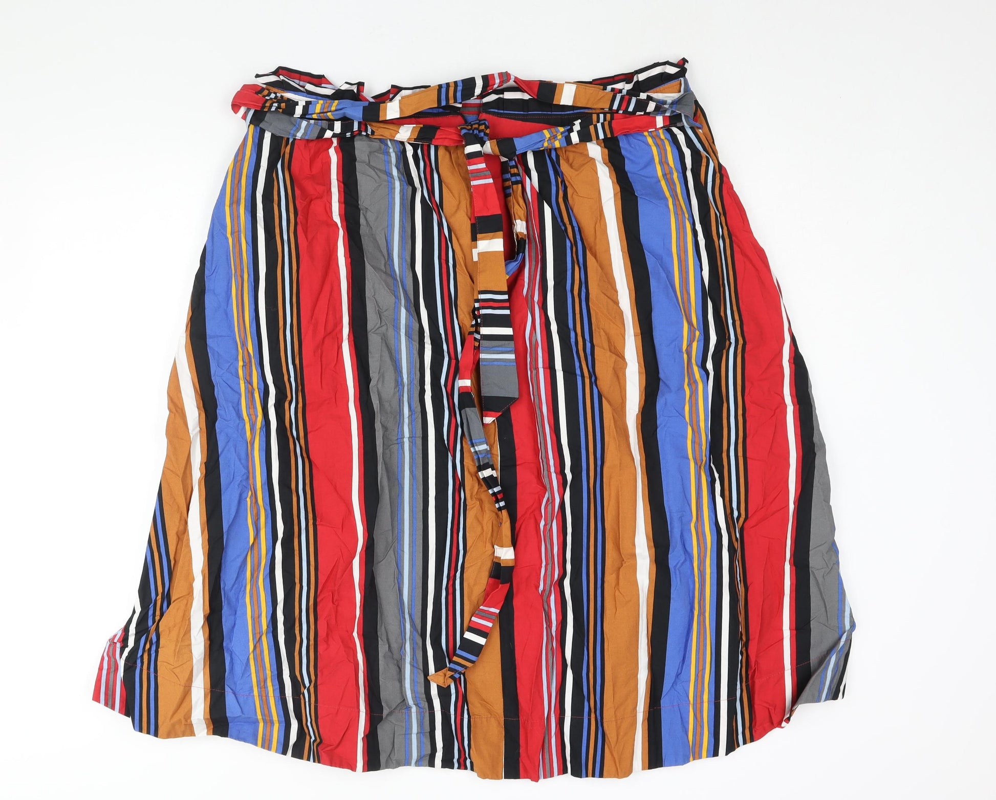 NEXT Womens Multicoloured Striped Cotton A-Line Skirt Size 18 Zip - Belted