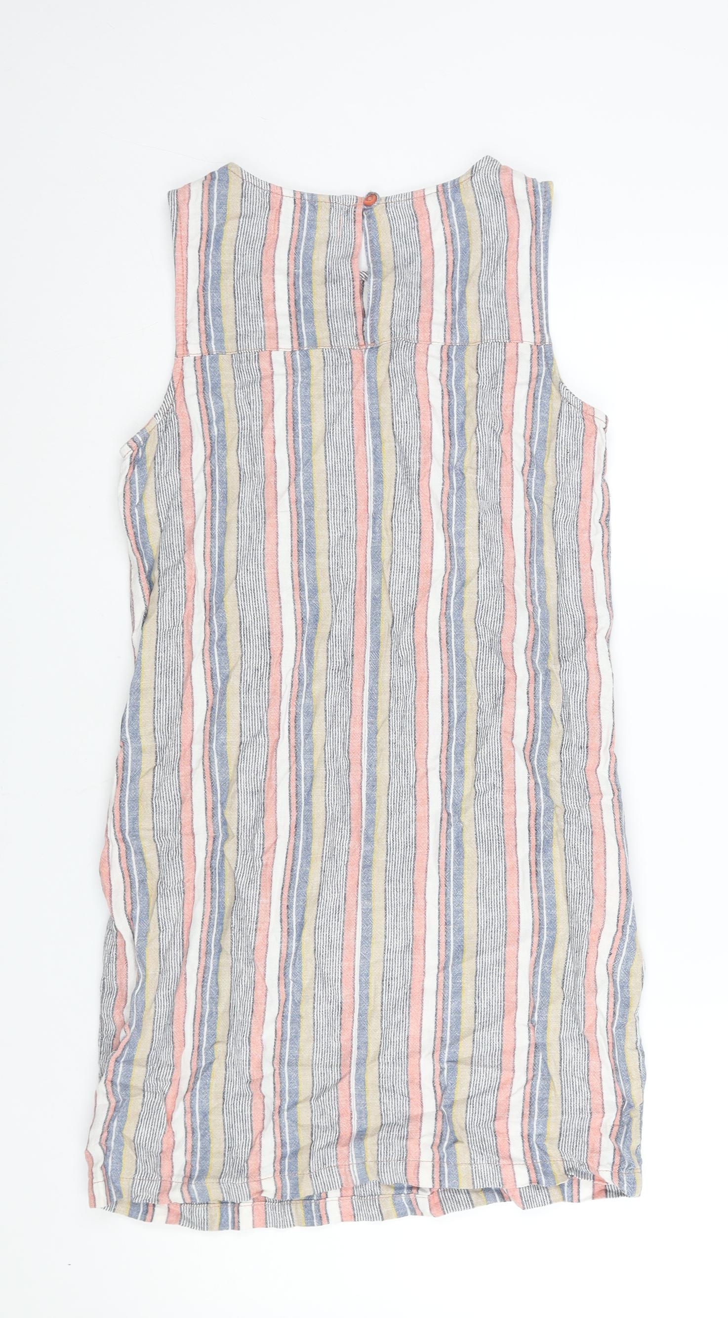 NEXT Womens Multicoloured Striped Linen Shift Size 8 Round Neck Button - Lace Detail