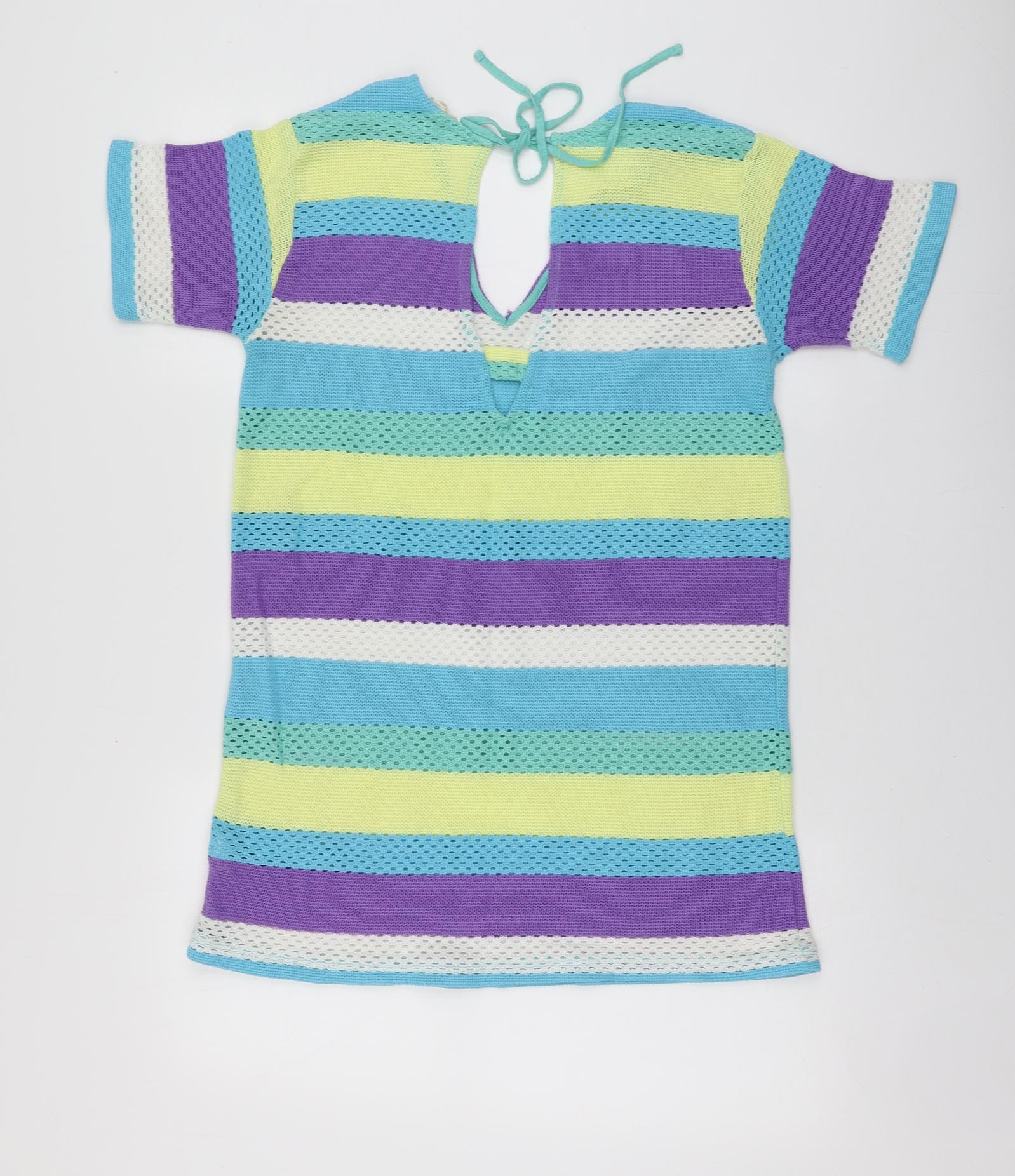 NEXT Womens Multicoloured Striped Polyester A-Line Size M V-Neck - BEACHWEAR
