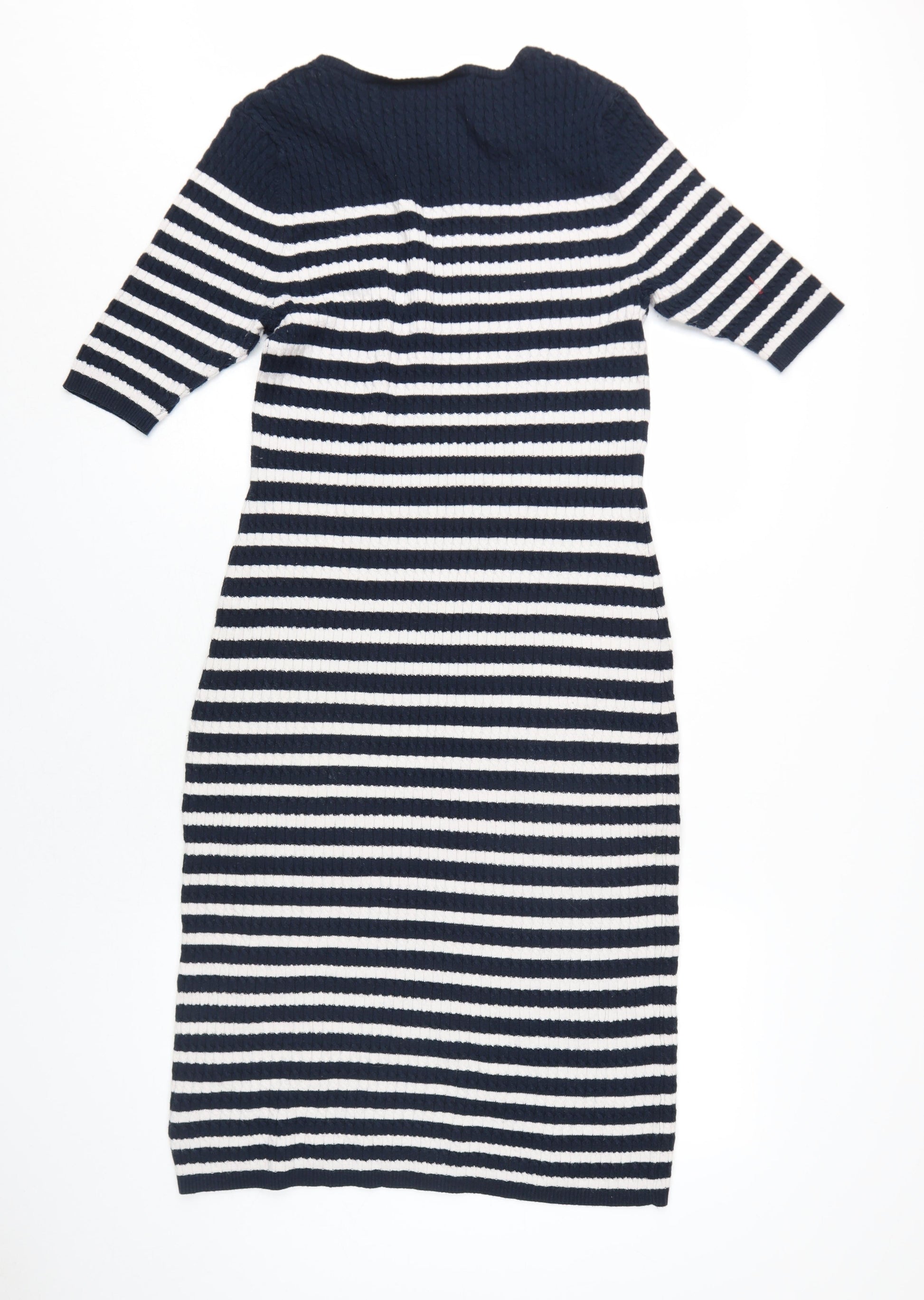 Next Women's Navy Blue Striped A-Line Dress UK 14
