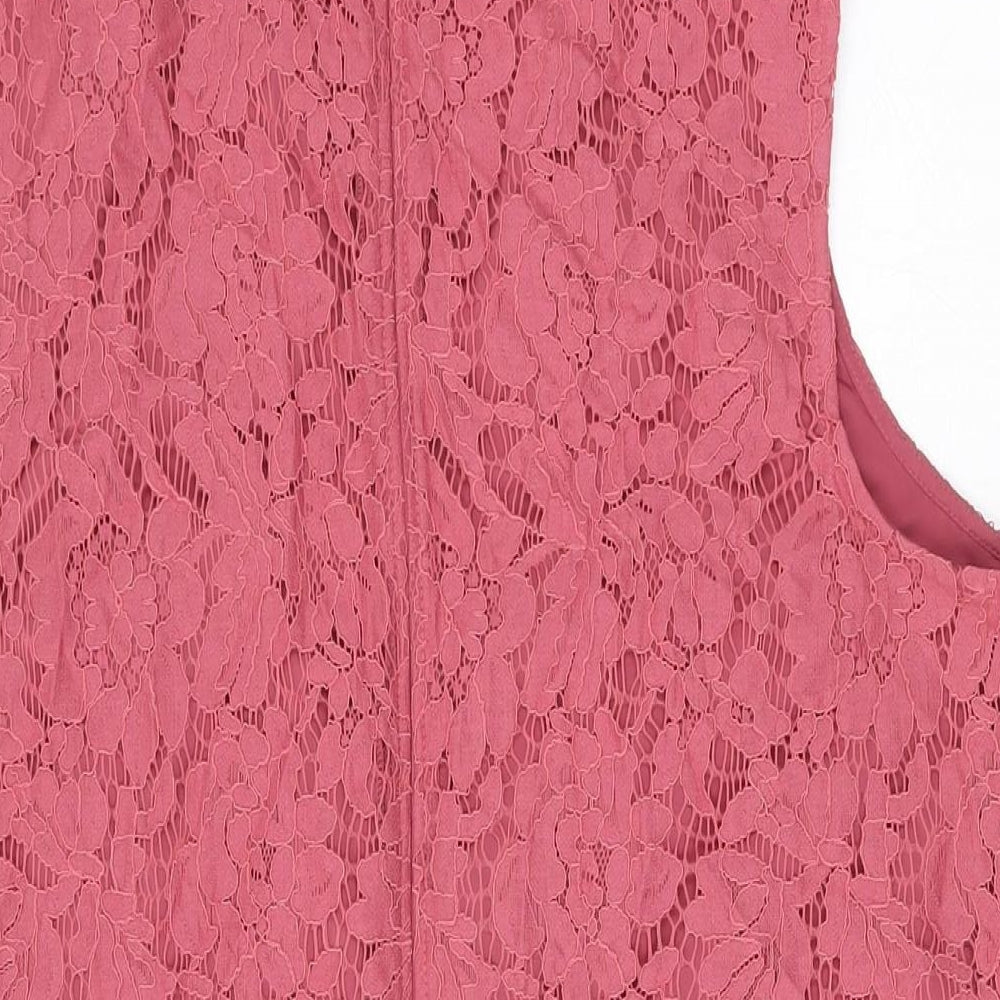 NEXT Womens Pink Floral Nylon Shift Size 16 Round Neck Zip
