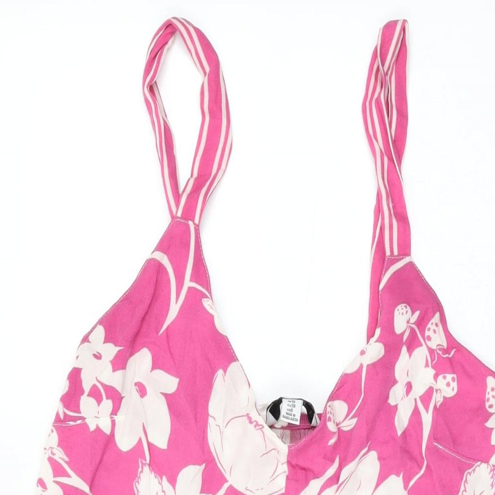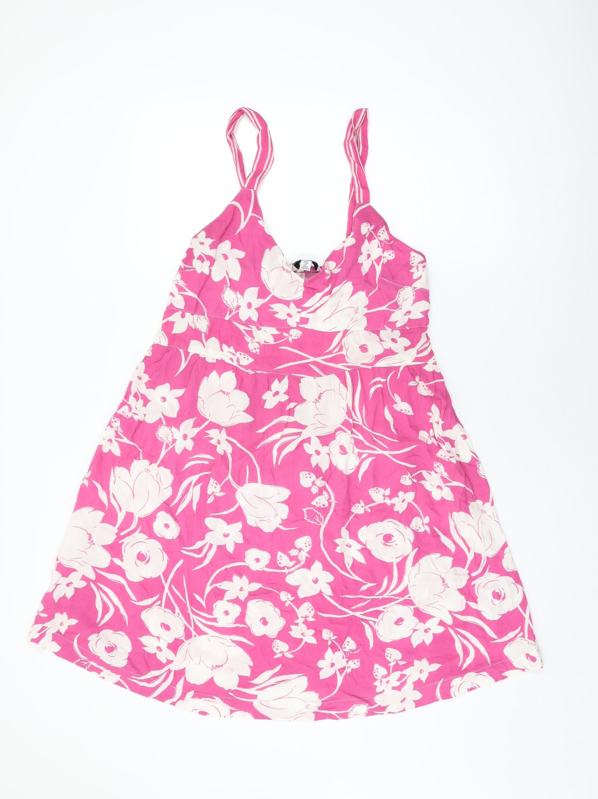 NEXT Womens Pink Floral Viscose Shift Size 10 V-Neck Pullover