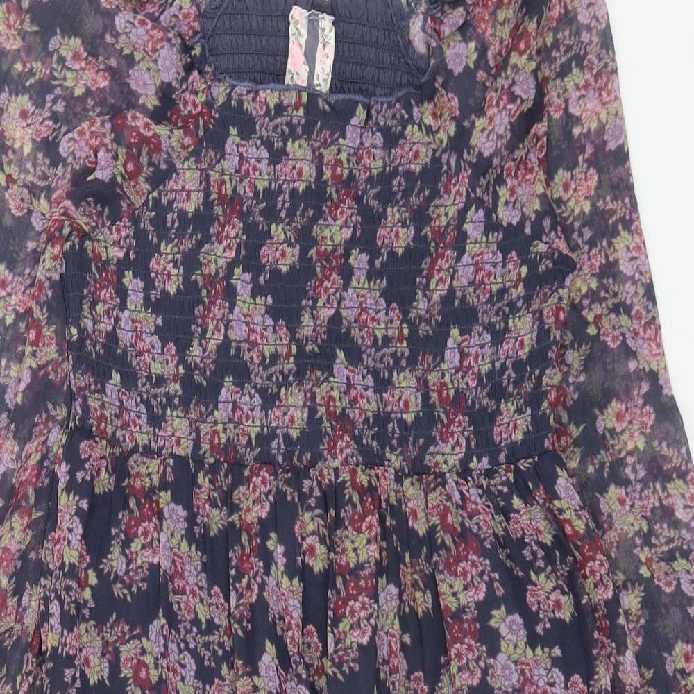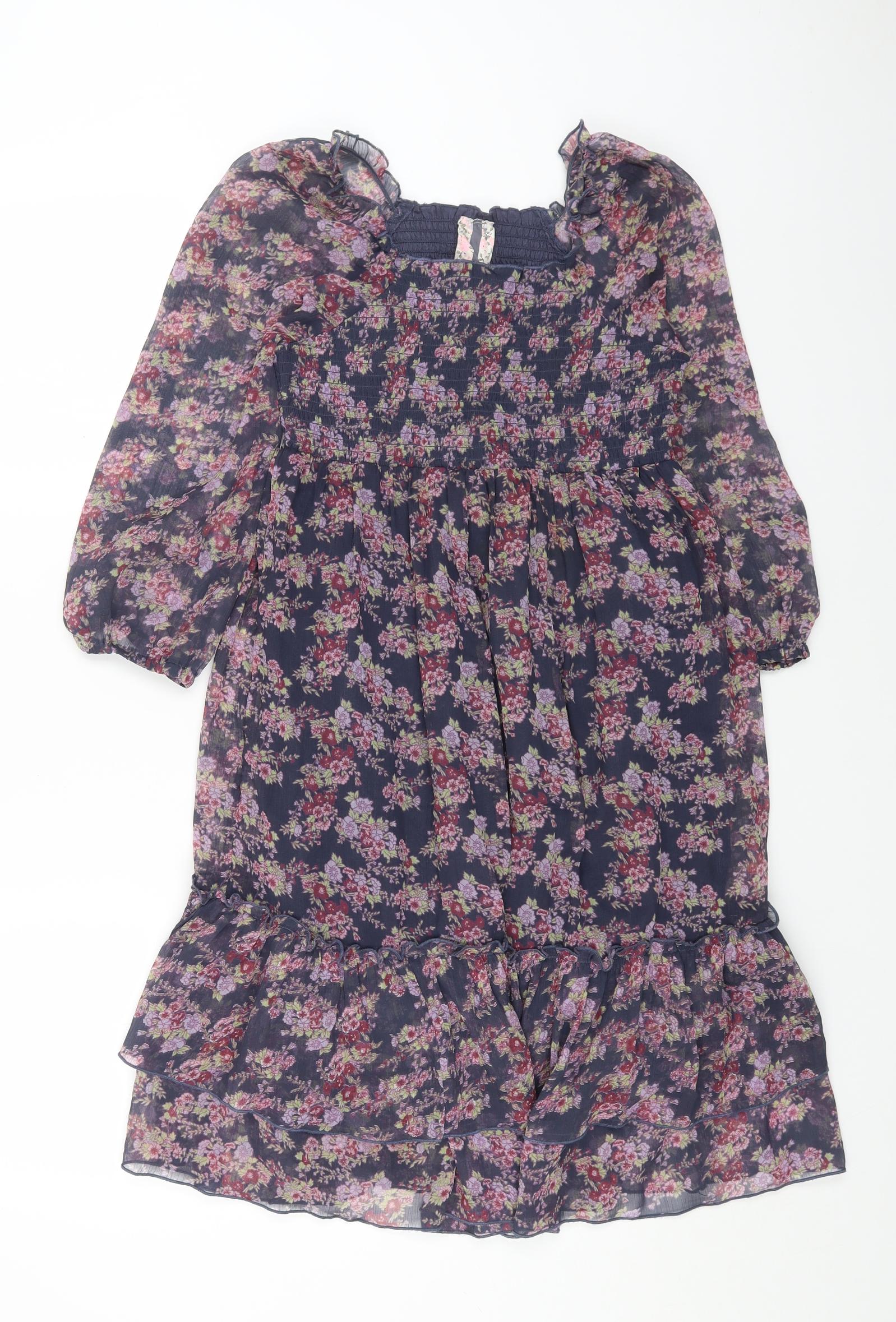 NEXT Womens Purple Floral Polyester A-Line Size 10 Square Neck Pullover - Shirred Top