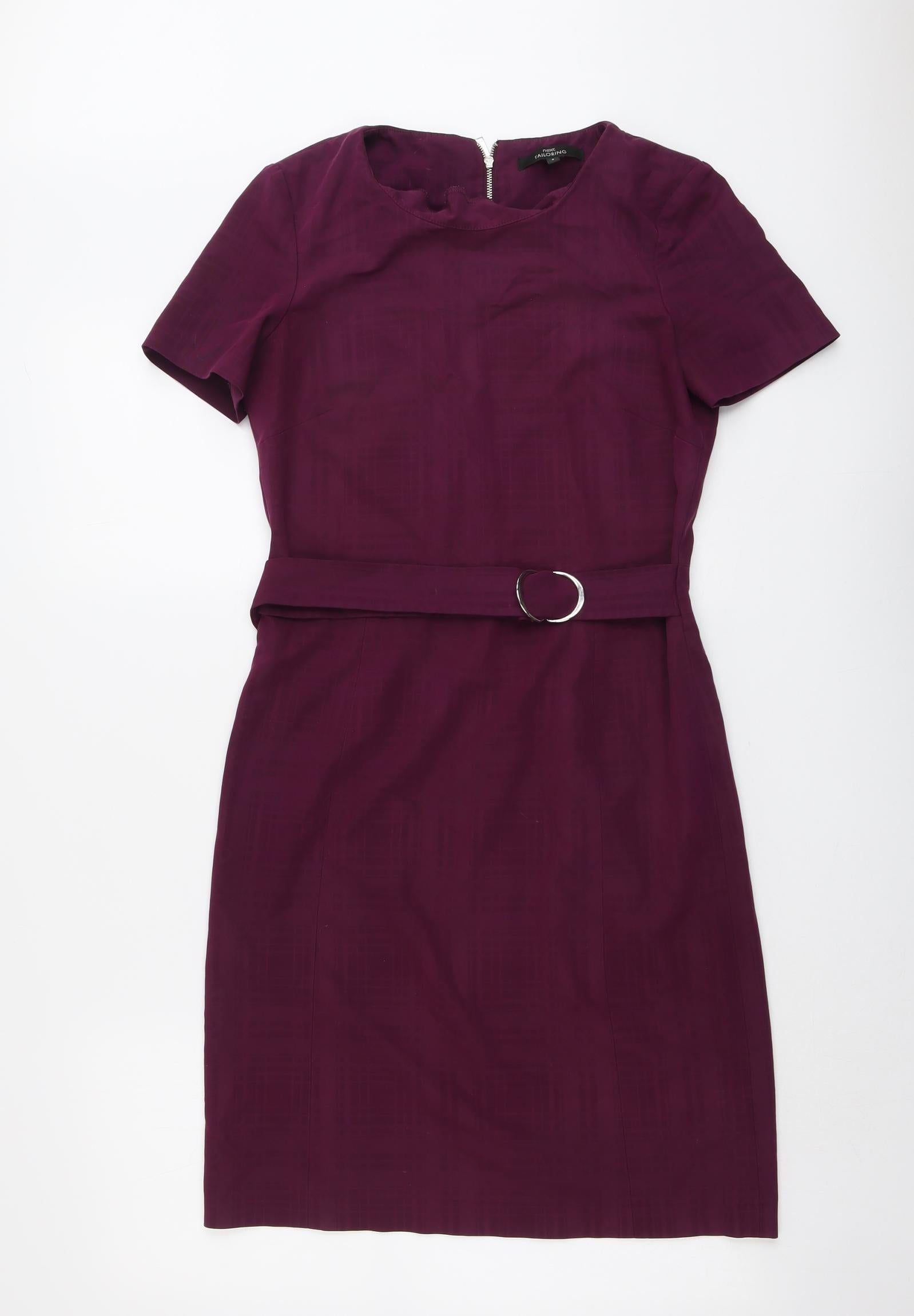 NEXT Womens Purple Polyester Shift Size 6 Round Neck Zip