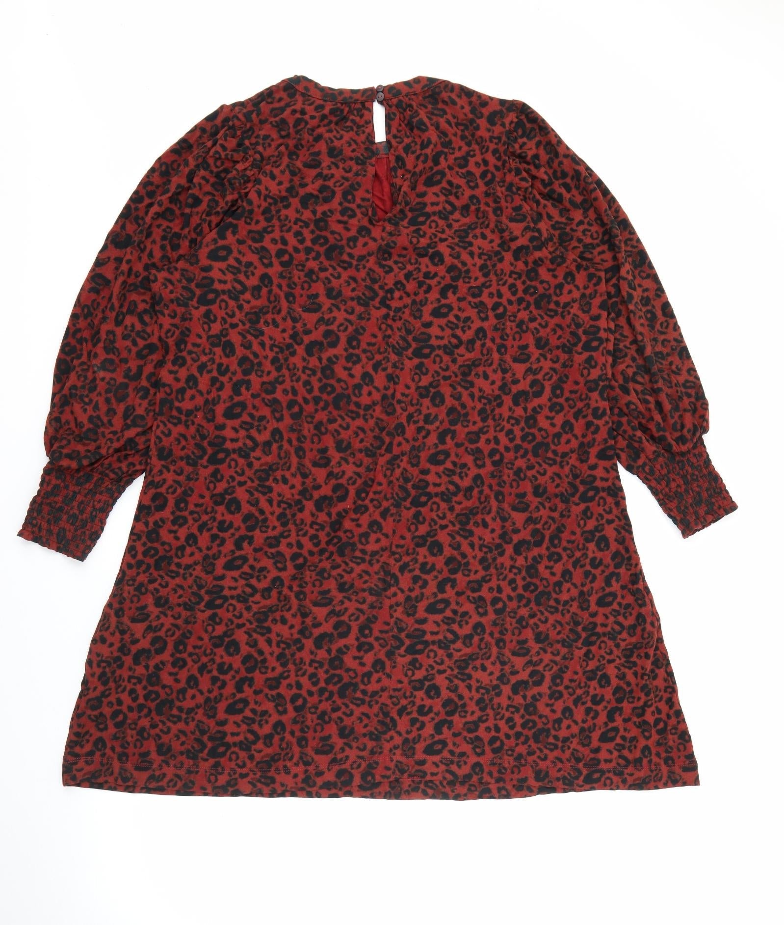 NEXT Womens Red Animal Print Viscose Sheath Size 14 Crew Neck Button