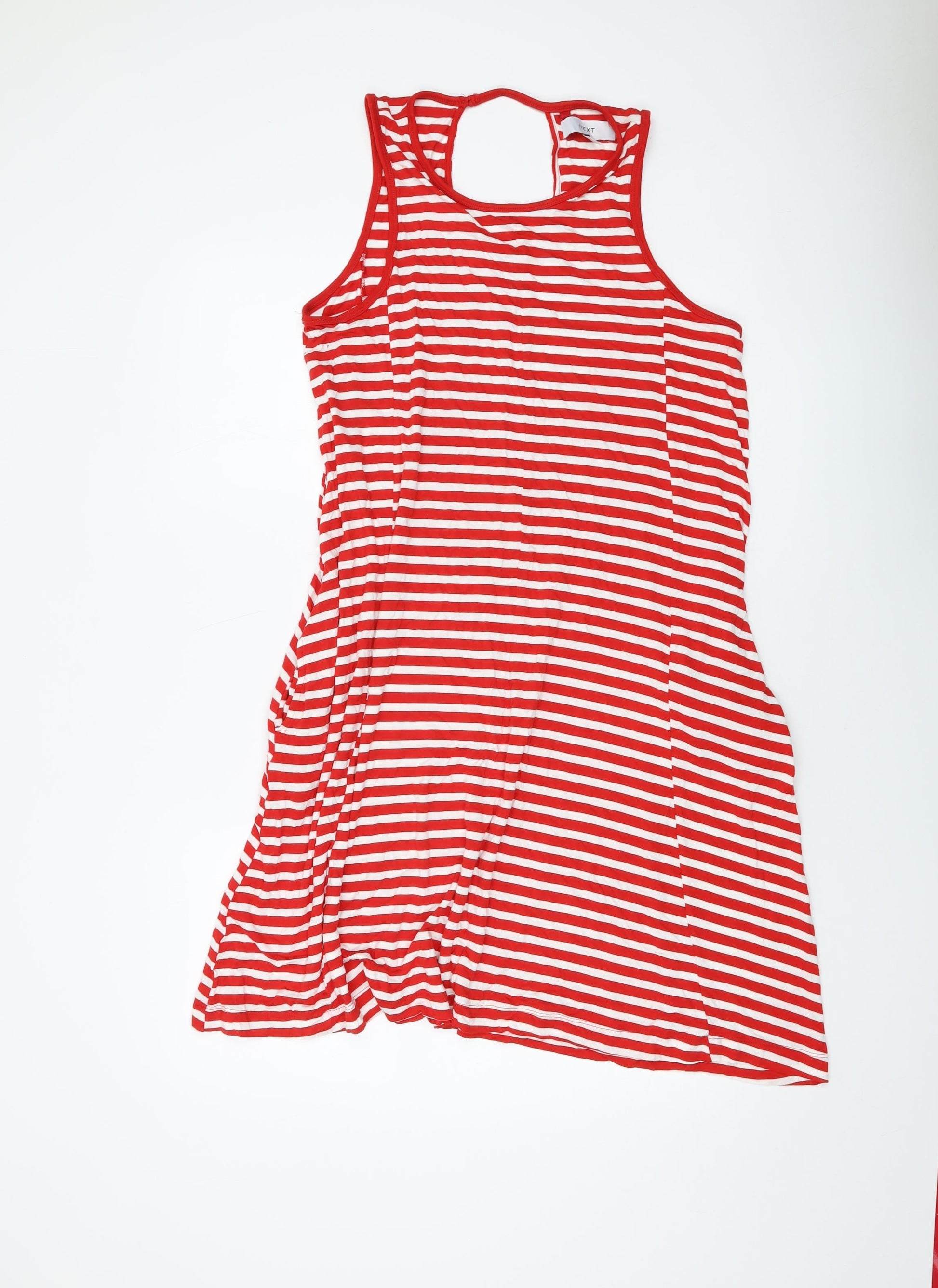 NEXT Womens Red Striped Viscose A-Line Size L Round Neck Pullover
