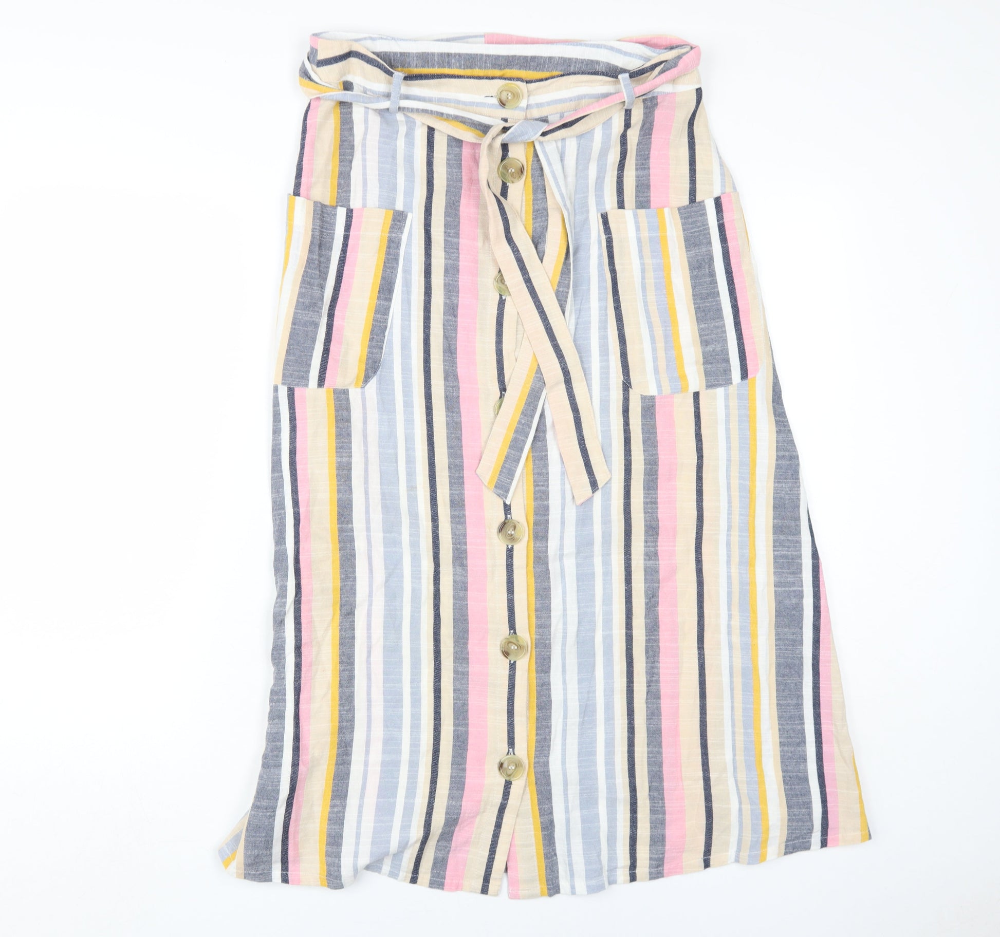 Next Women's Striped Midi Skirt, Size 12, A-Line, Pockets