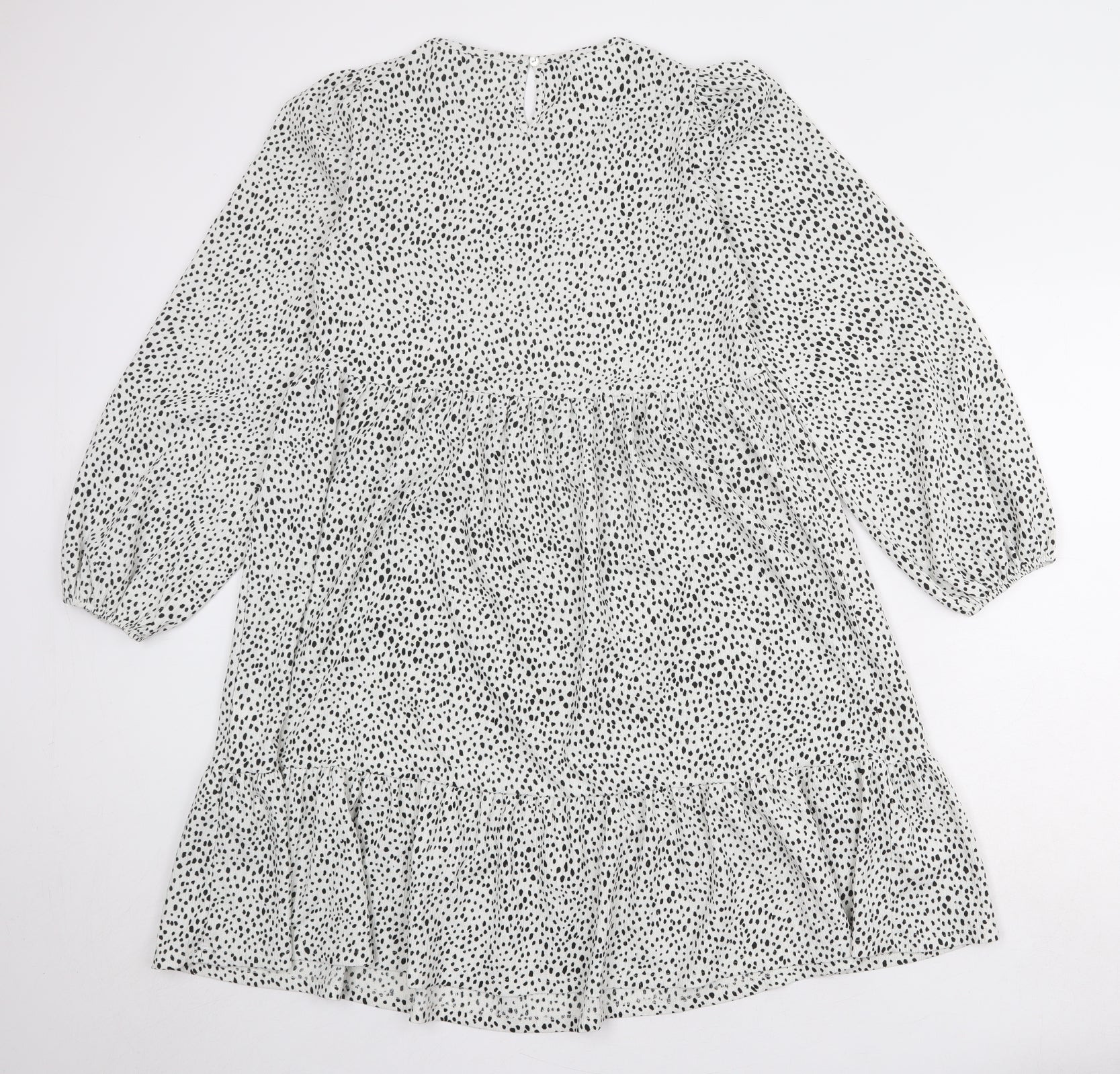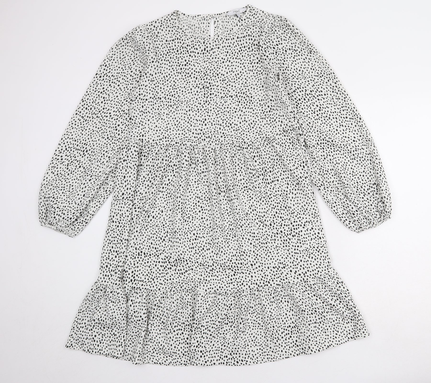 NEXT Womens White Animal Print Polyester A-Line Size 6 Round Neck Button