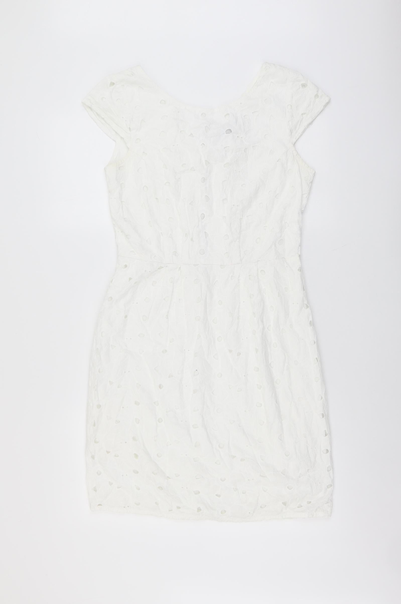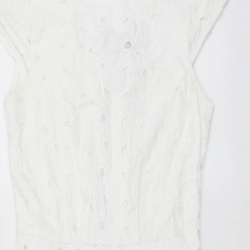 NEXT Womens White Floral Cotton Mini Size 12 Round Neck Zip