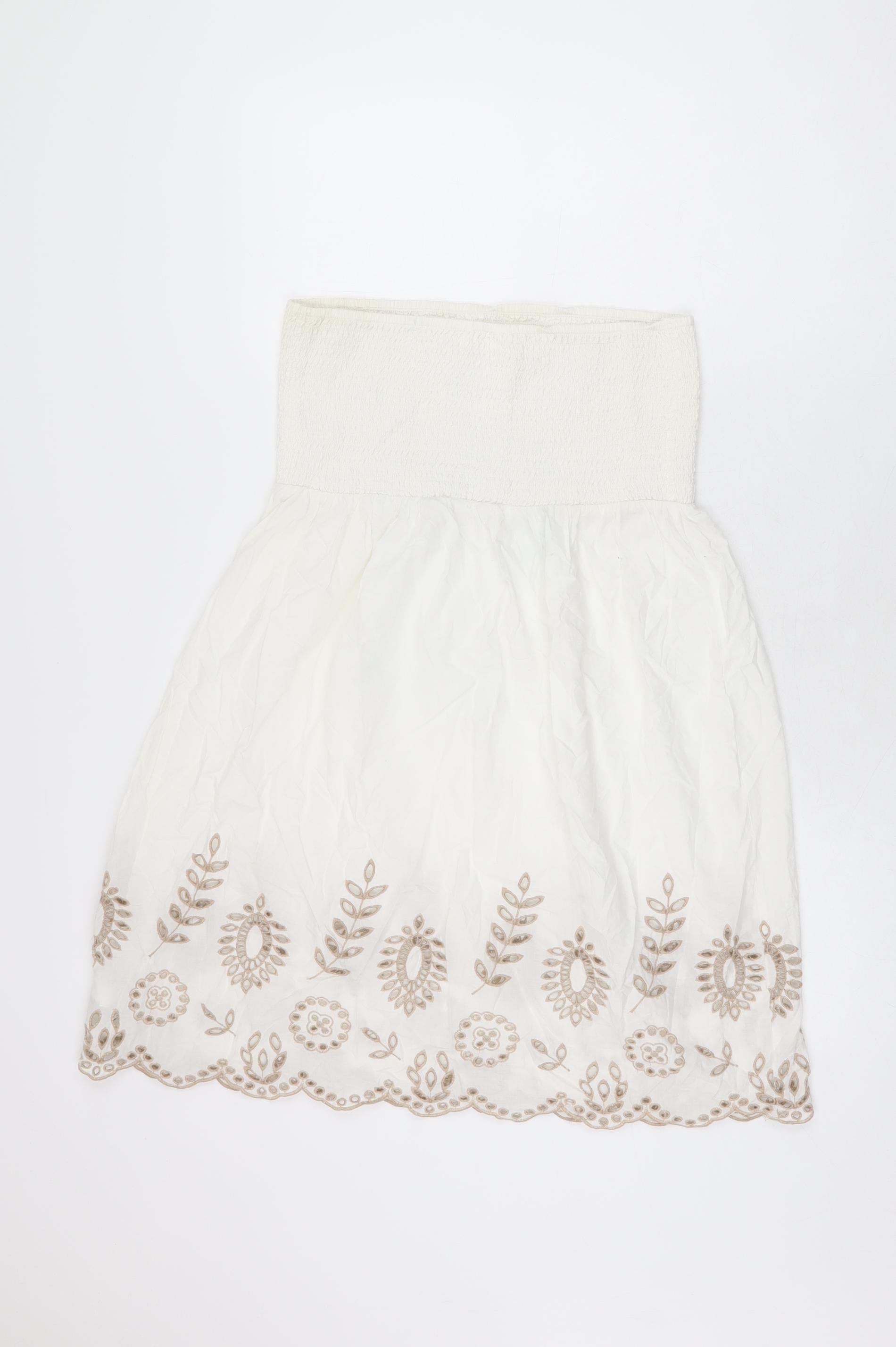 NEXT Womens White Floral Cotton Shift Size 10 Off the Shoulder Pullover
