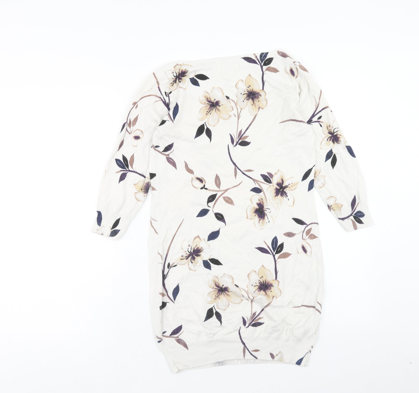 NEXT Womens White Floral Cotton Shift Size 8 Boat Neck Pullover
