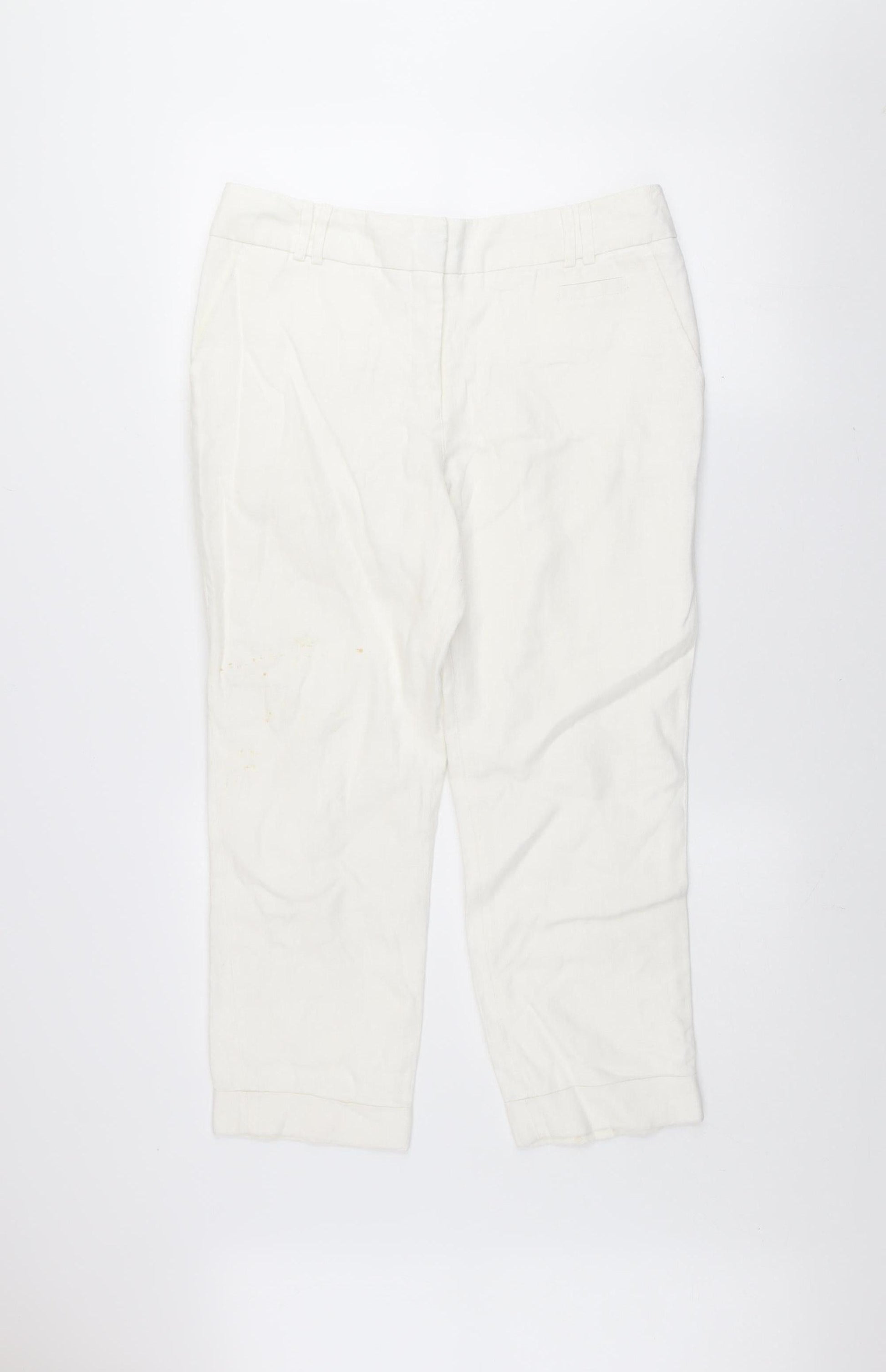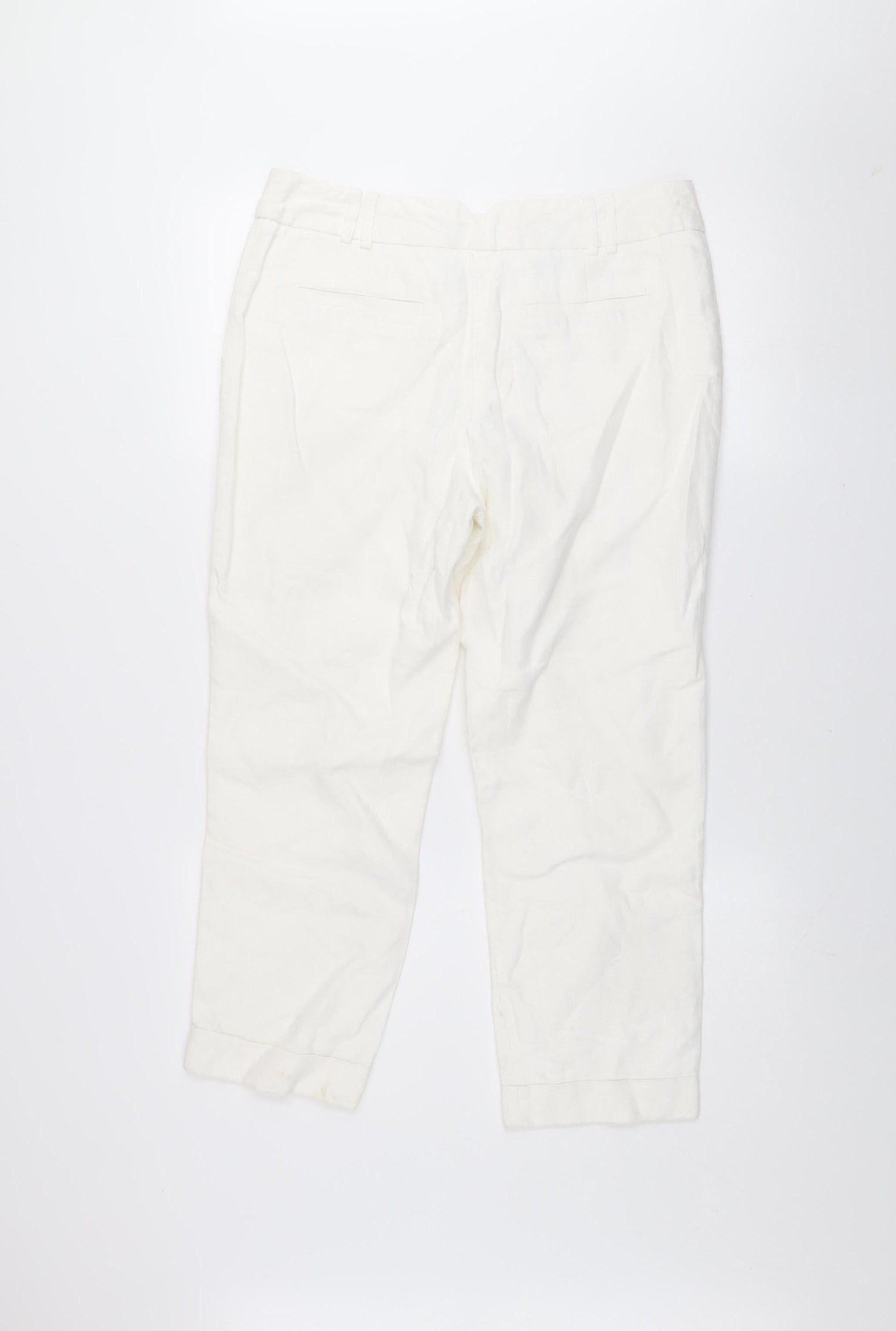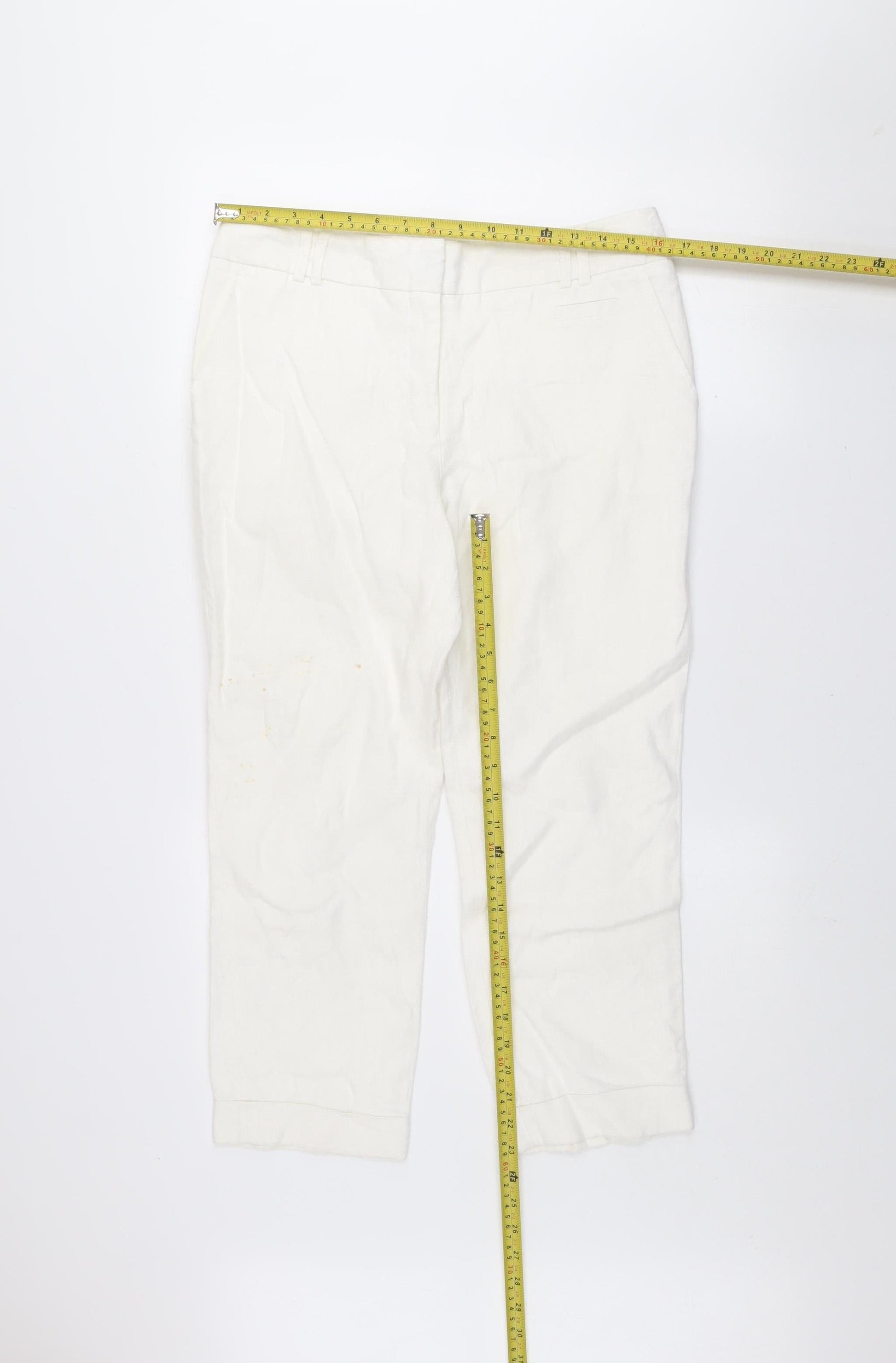 Next Womens White Linen Cropped Trousers Size 12 Regular