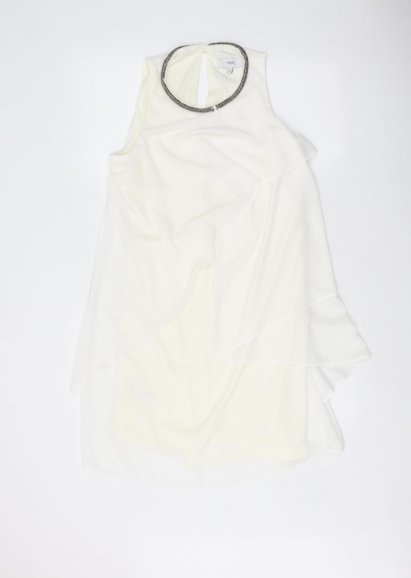 NEXT Womens White Polyester Trapeze & Swing Size 12 Round Neck Button