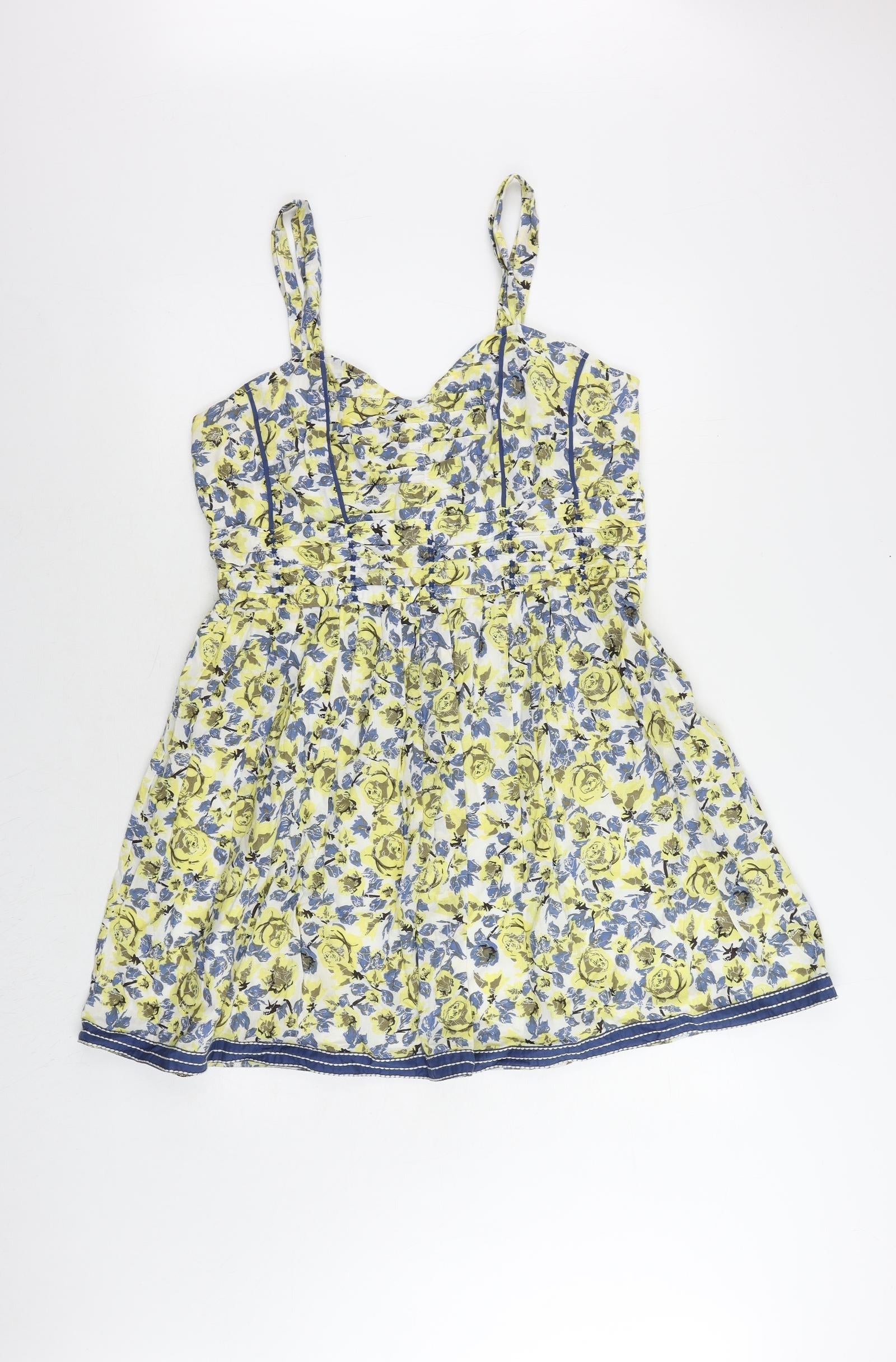 NEXT Womens Yellow Floral Cotton Fit & Flare Size 16 Sweetheart Zip