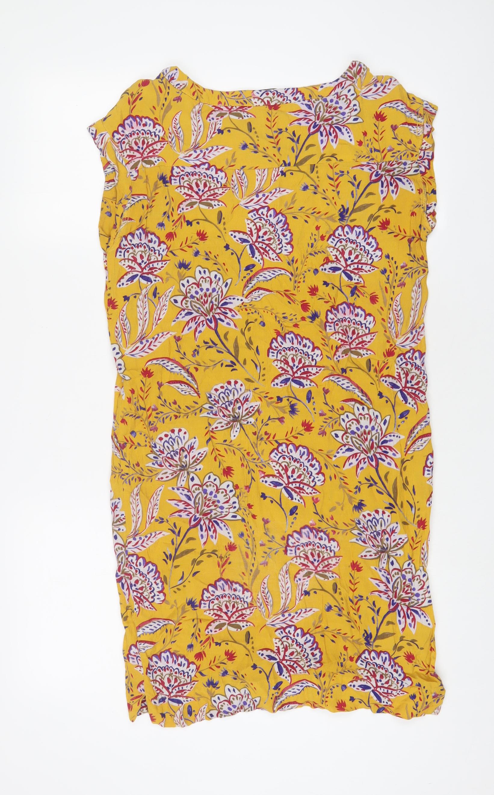 NEXT Womens Yellow Floral Viscose Sheath Size 10 Boat Neck Pullover