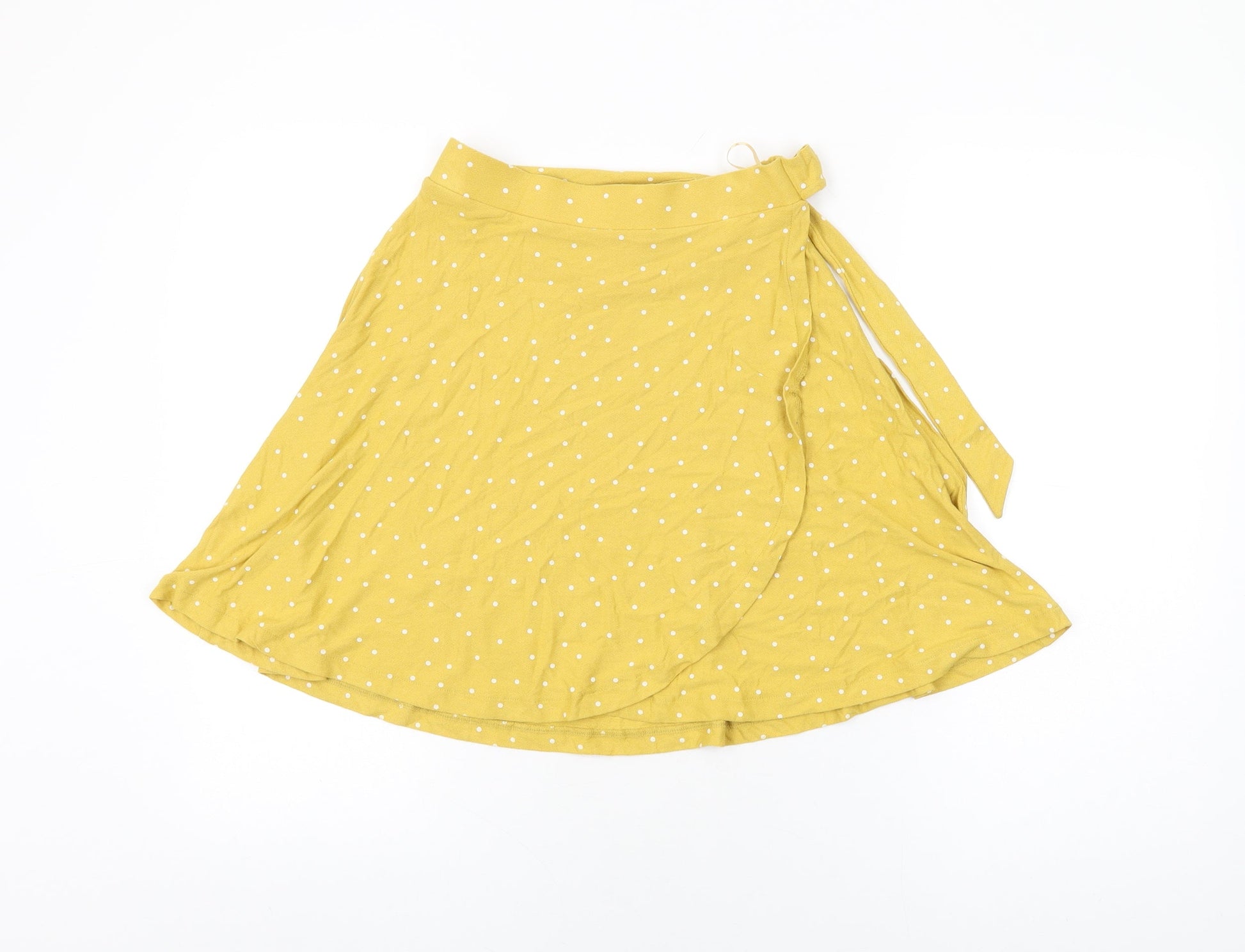NEXT Womens Yellow Polka Dot Viscose Skater Skirt Size 6 Tie