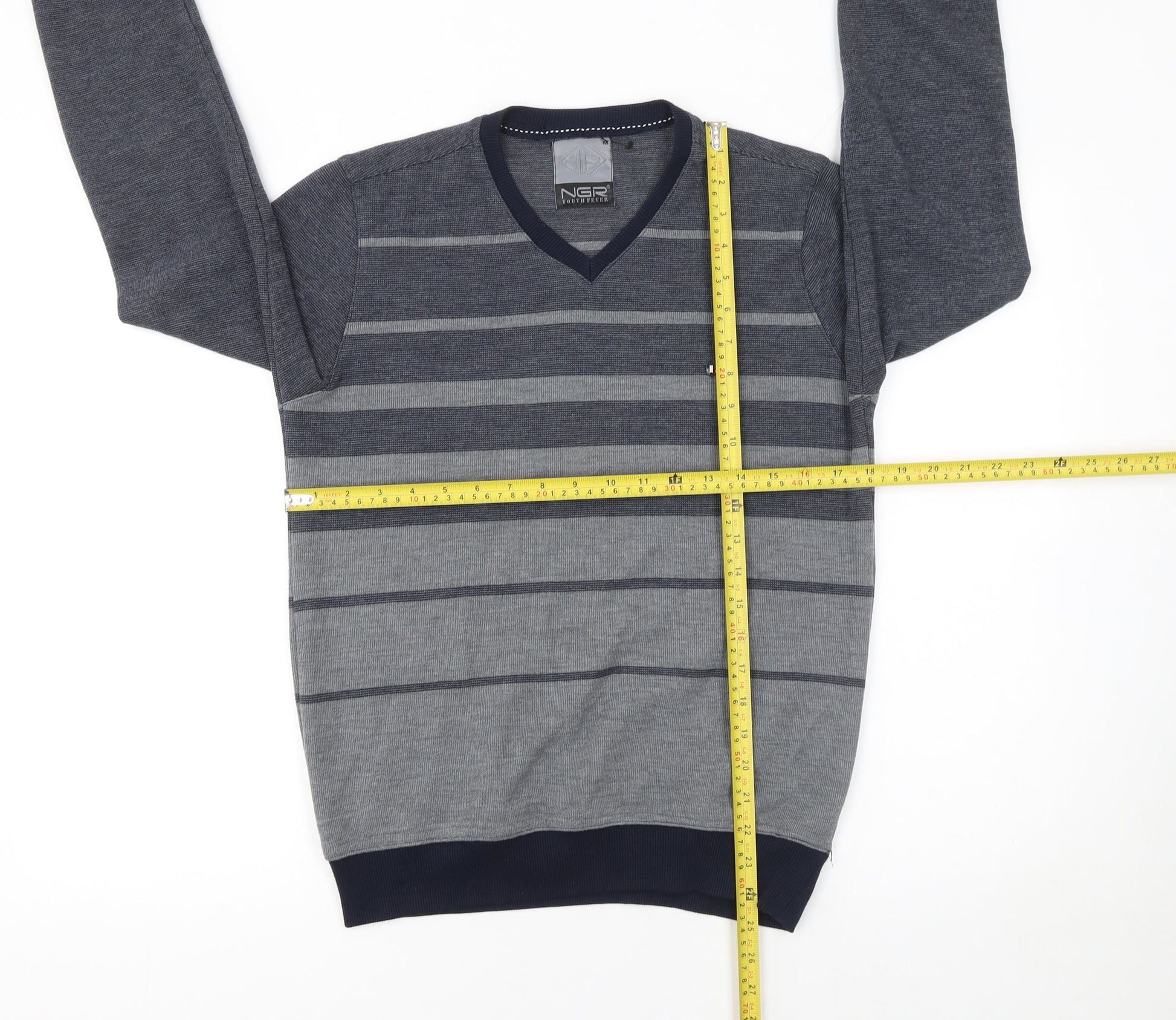 NGR Men's Grey Striped V-Neck Pullover Jumper Size M