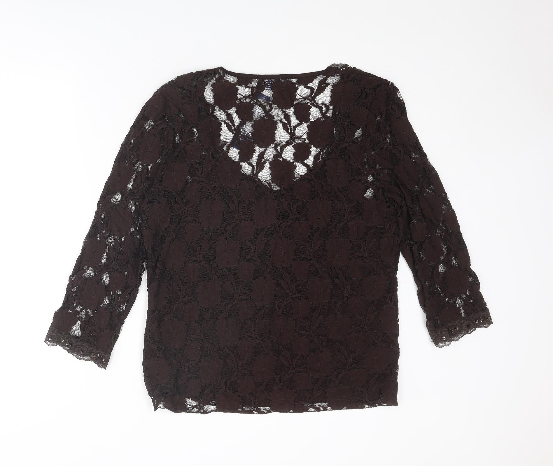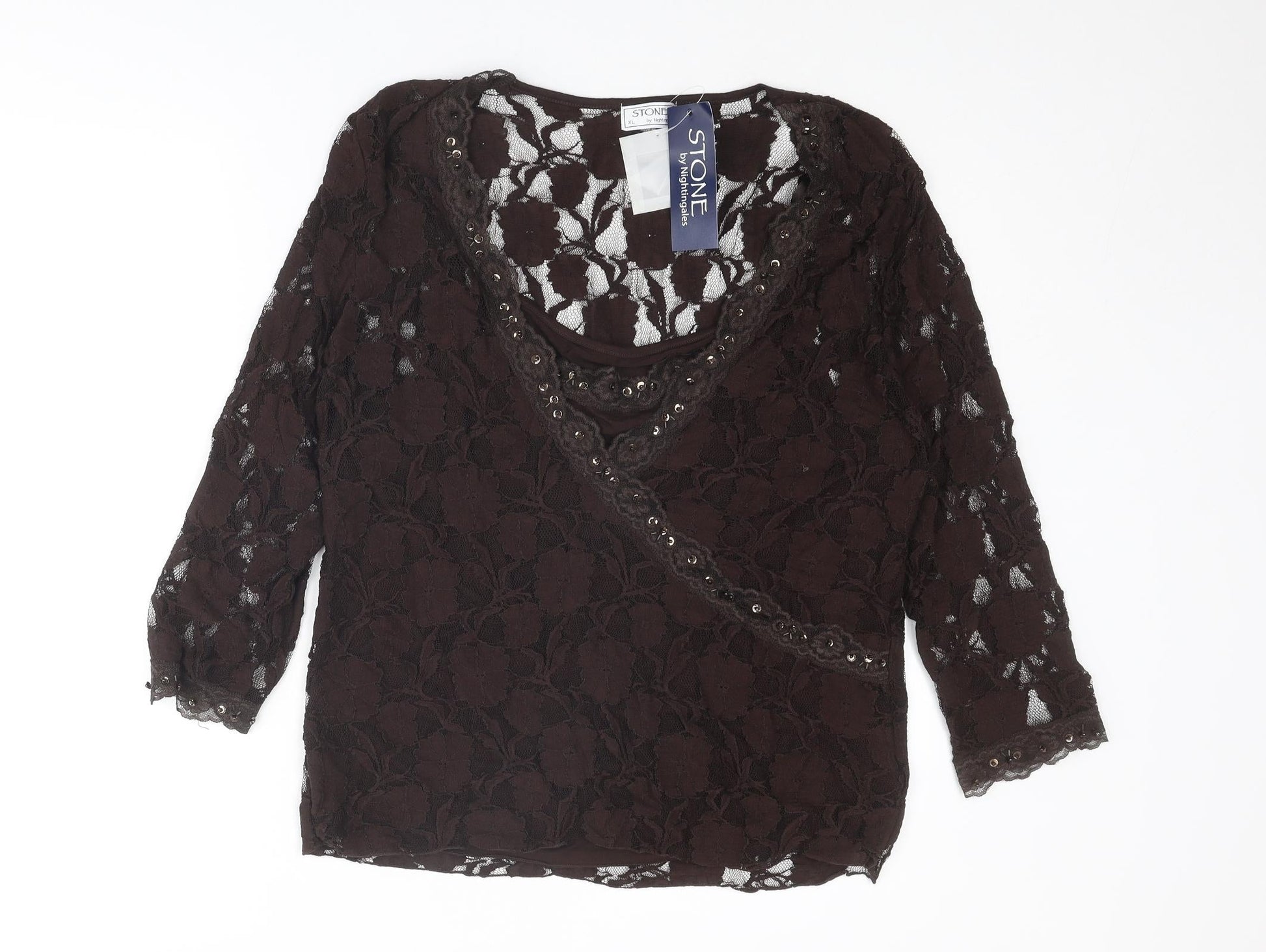 Nightingales Womens Brown Nylon Basic Blouse Size XL Scoop Neck