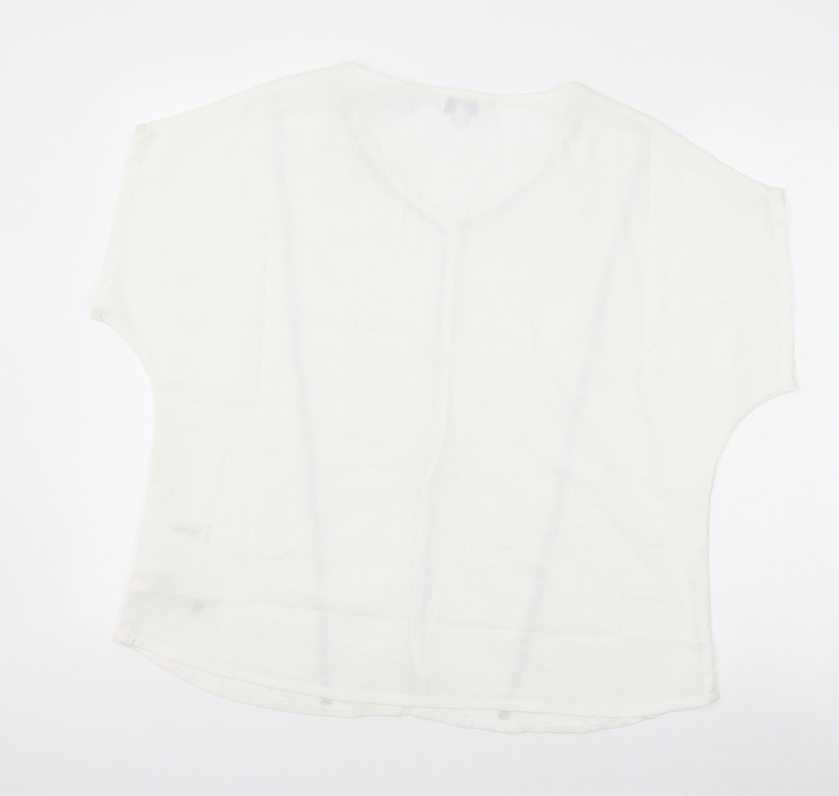 Nightingales Womens White Polyester Basic Blouse Size 16 V-Neck