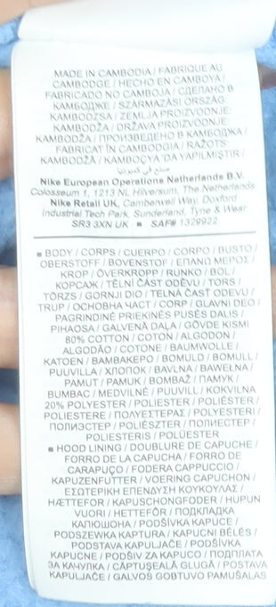 Nike Boys Blue Pullover Hoodie Size L 147-158cm Cotton Blend Casual