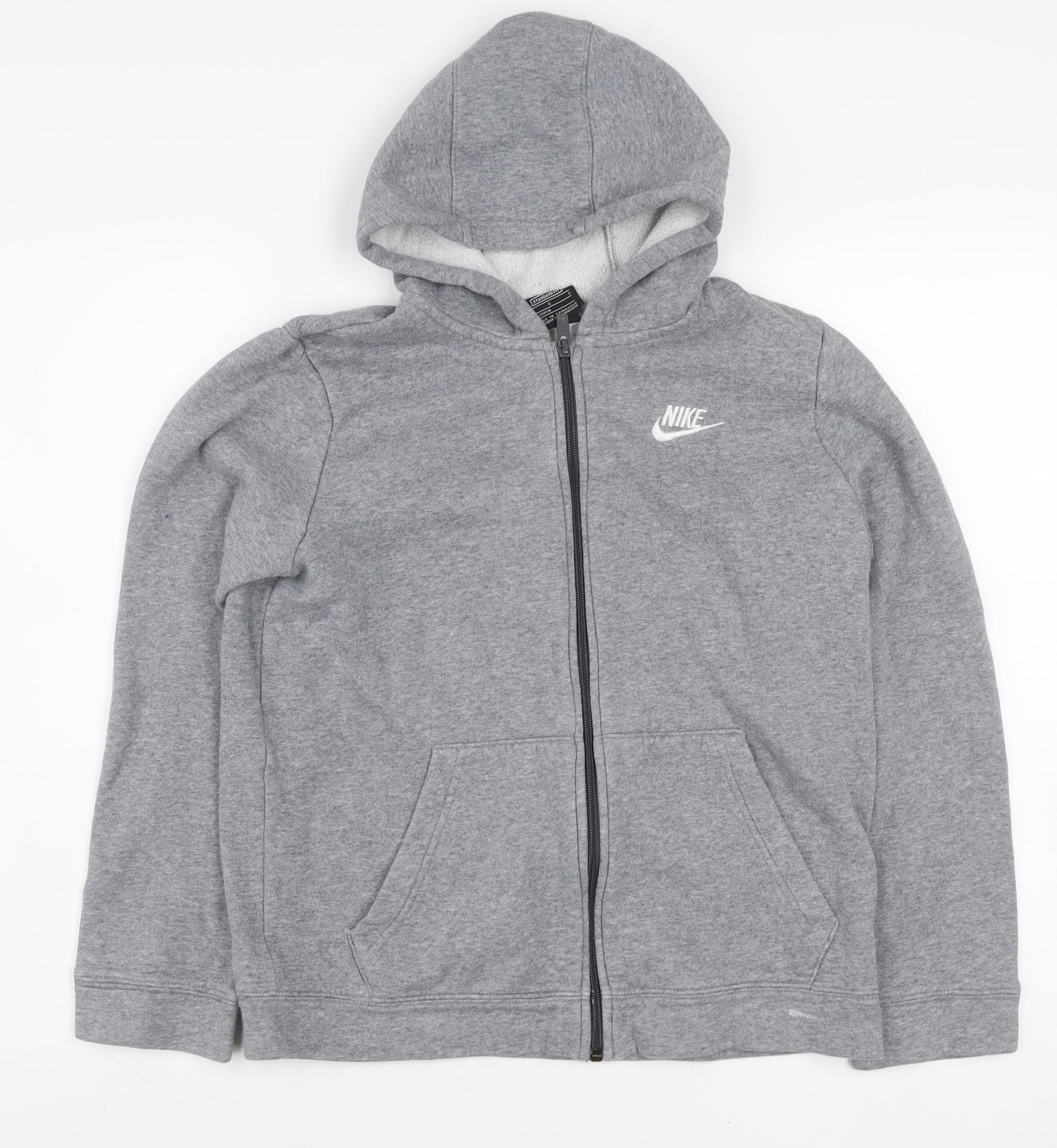 Nike Boys Grey Full Zip Hoodie Size 158cm Regular Fit Lined Hooded Sweatshirt