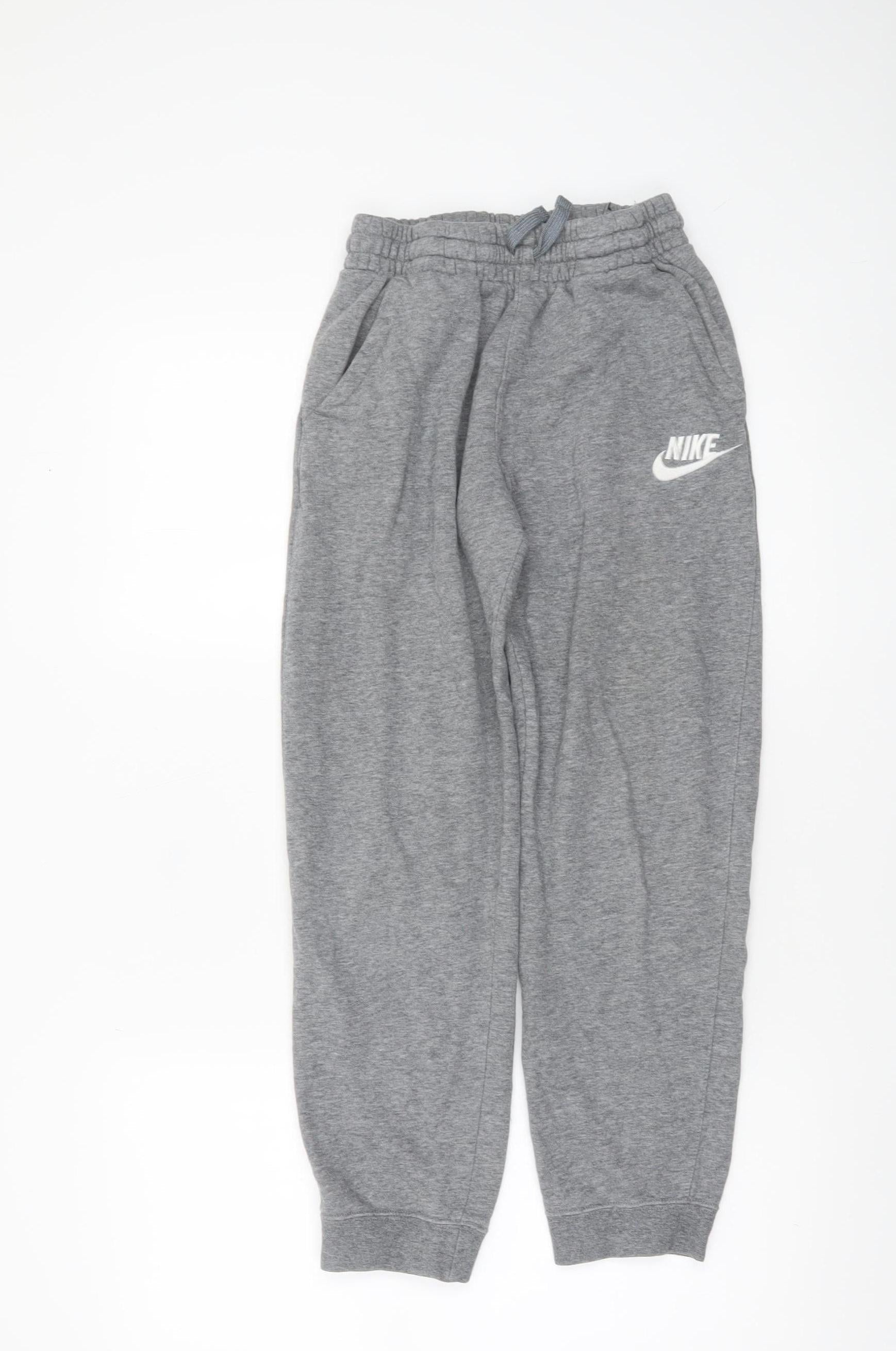 Nike Boys Grey Jogger Trousers L 158cm Cotton Blend Fleece Sweatpants
