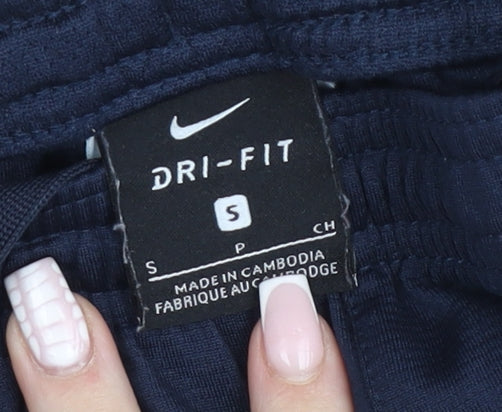 Nike Boys Navy Blue Dri-FIT Athletic Shorts S Polyester Drawstring