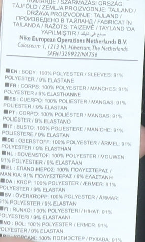 - Material Breakdown: 91% Polyester 9% Elastane