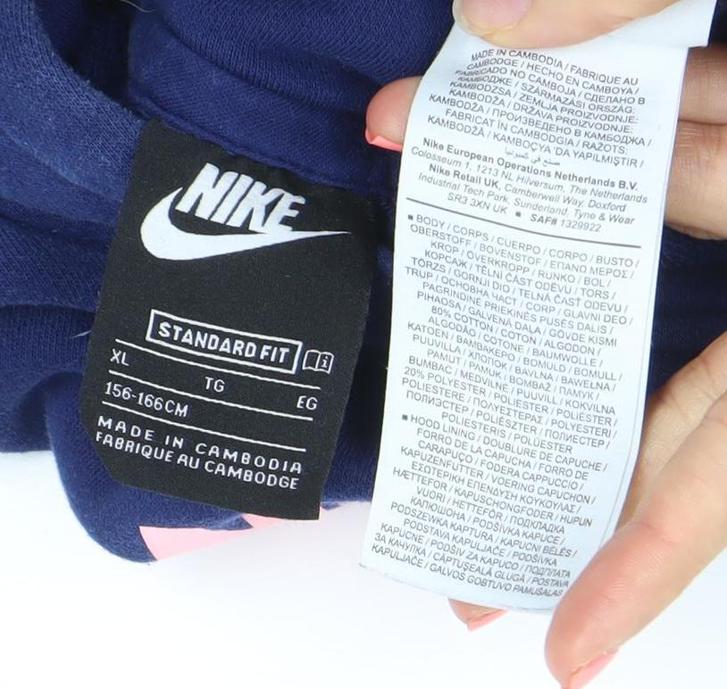 Nike Girls Blue XL Pullover Fleece Hoodie with Logo Print