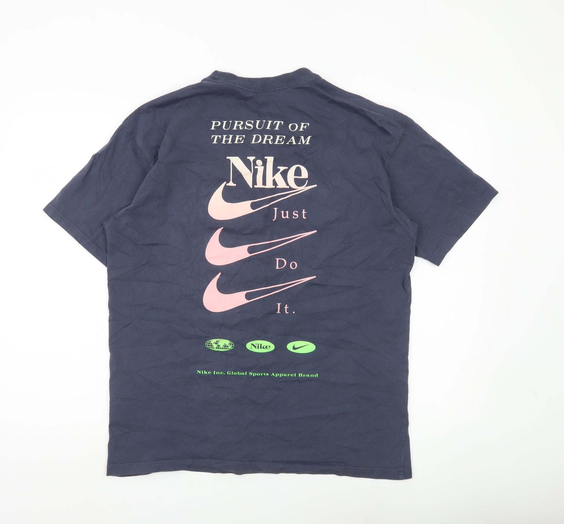 Nike Men’s Blue Graphic Logo T-Shirt Size M Loose Fit Short Sleeve