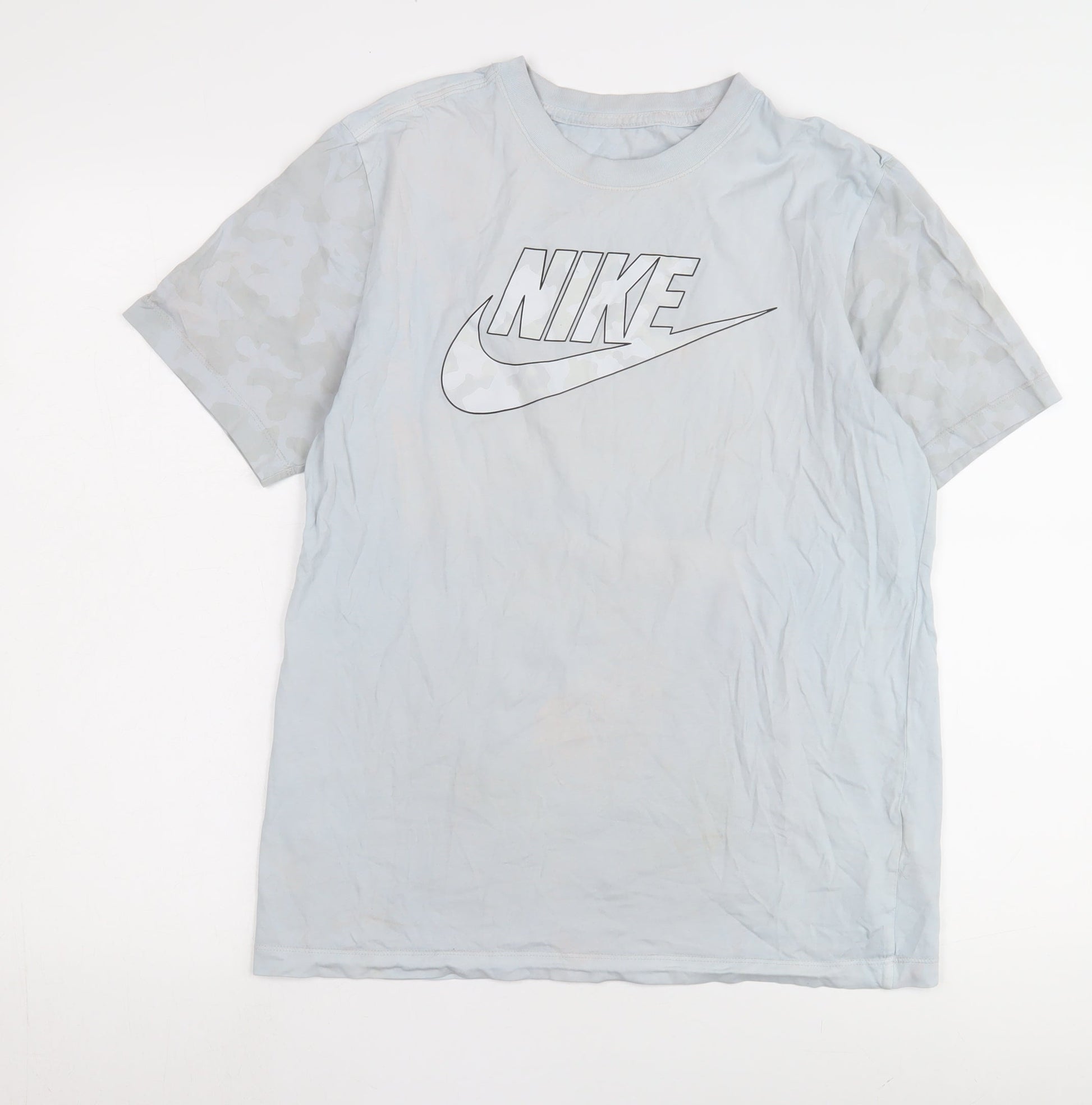 Nike Men's Blue M T-Shirt, Crew Neck, Cotton, Logo Accent