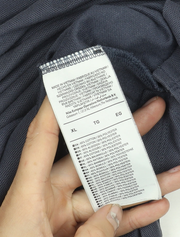 Nike Men's Blue XL Dri-Fit Polo Shirt Striped Sleeves Sports Top