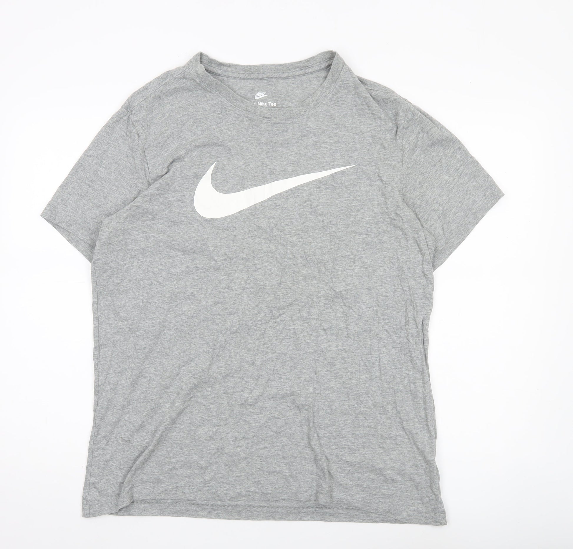 Nike Men's Grey Large Sports Logo T-Shirt Crew Neck