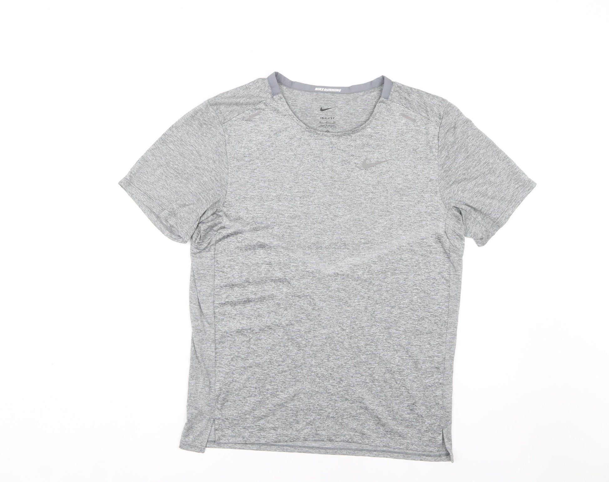Nike Men's Grey Running T-Shirt, Size S, Breathable, Logo