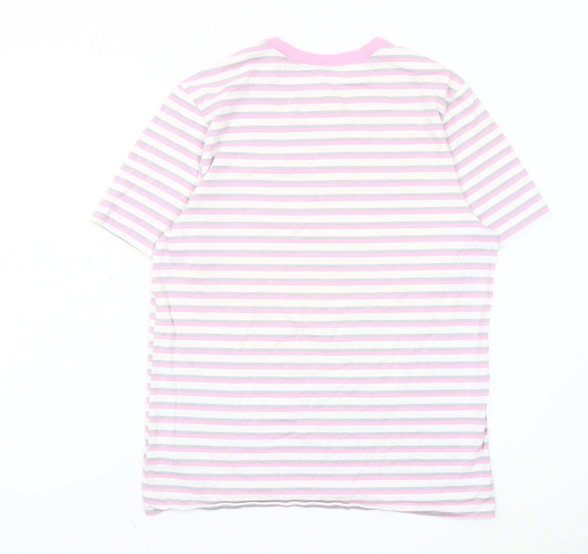 Nike Men's Pink Striped Crew Neck Cotton T-Shirt Size M