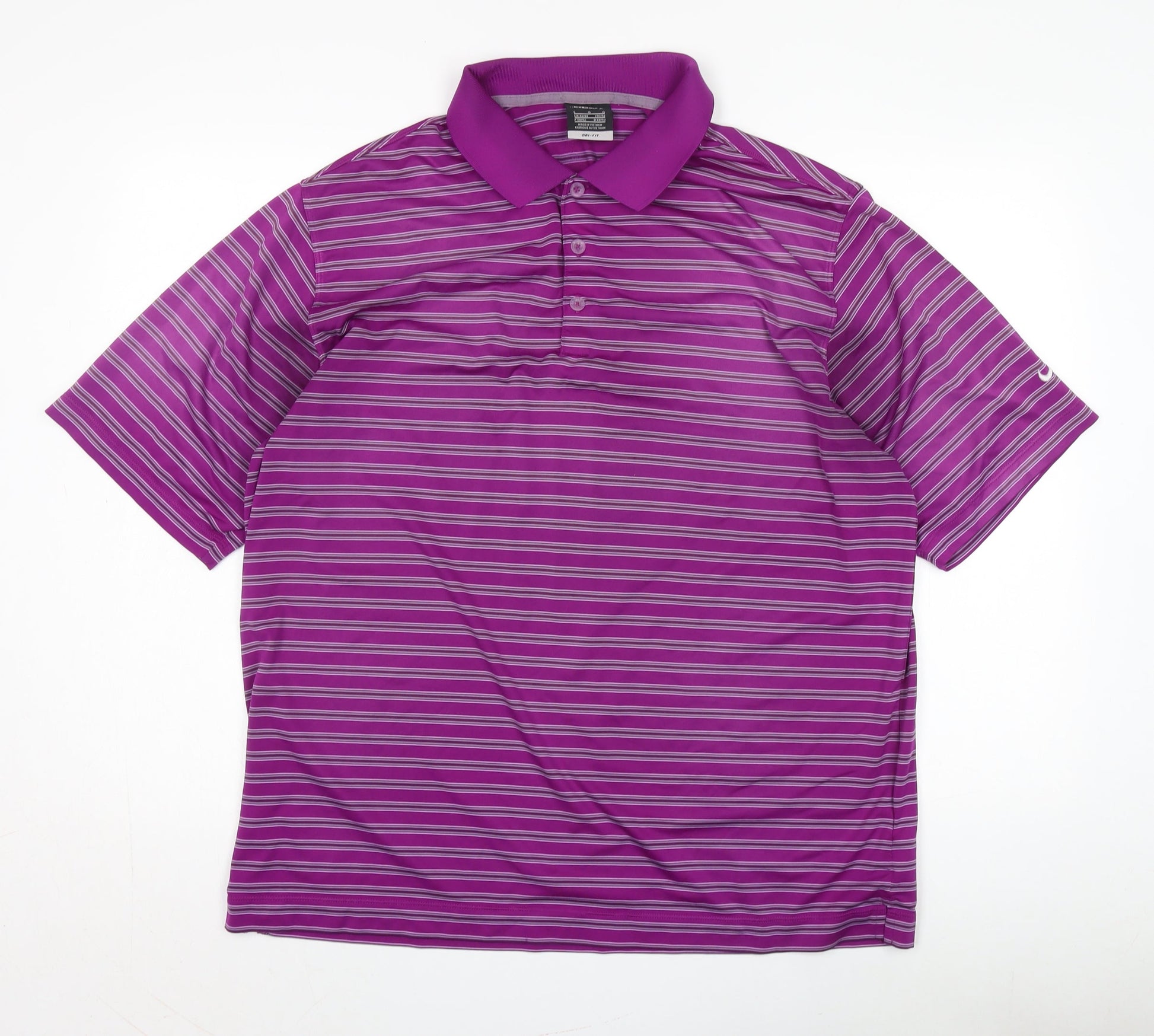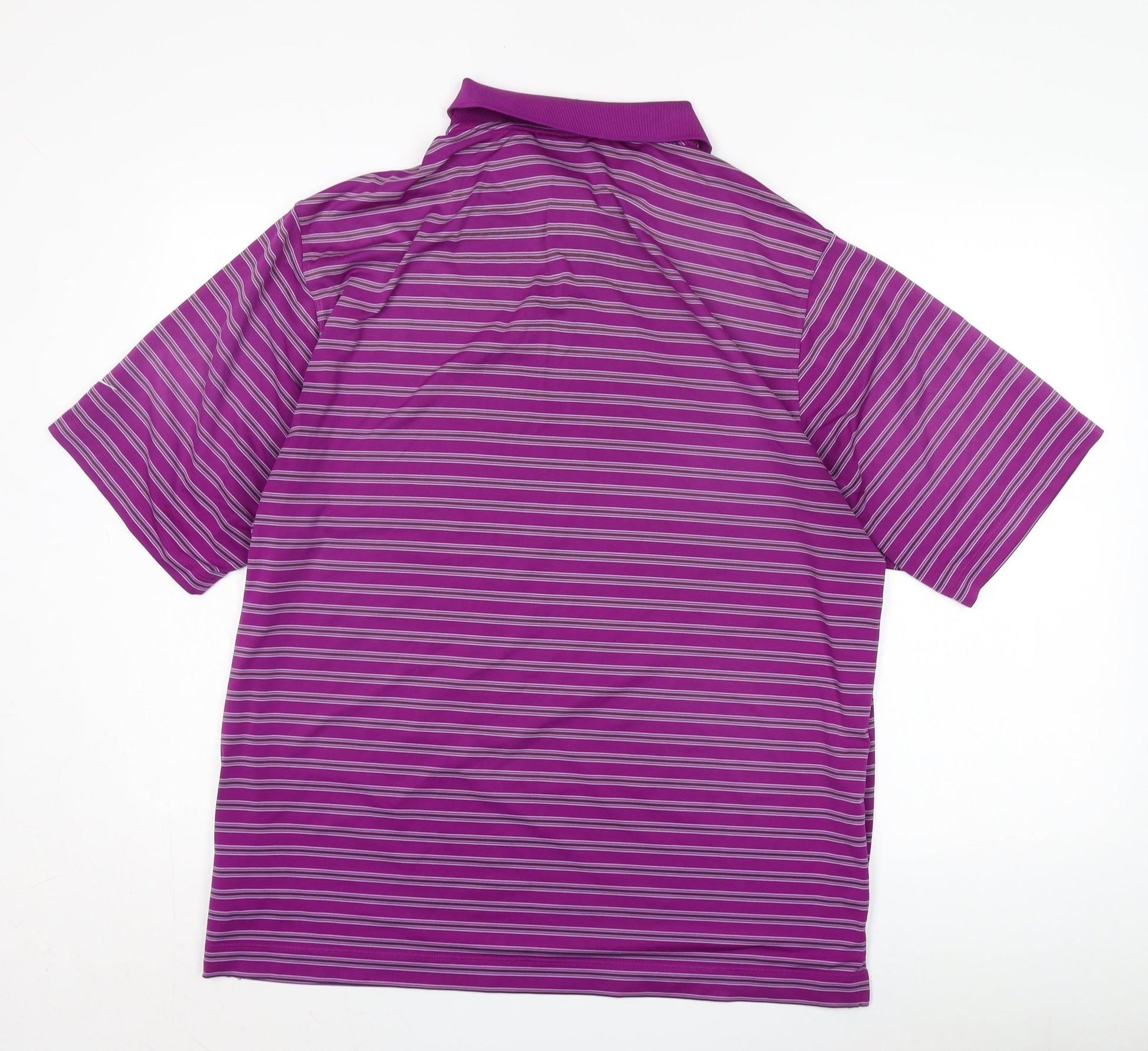 Nike Men's Purple Striped Polo Shirt L Golf Dri-Fit
