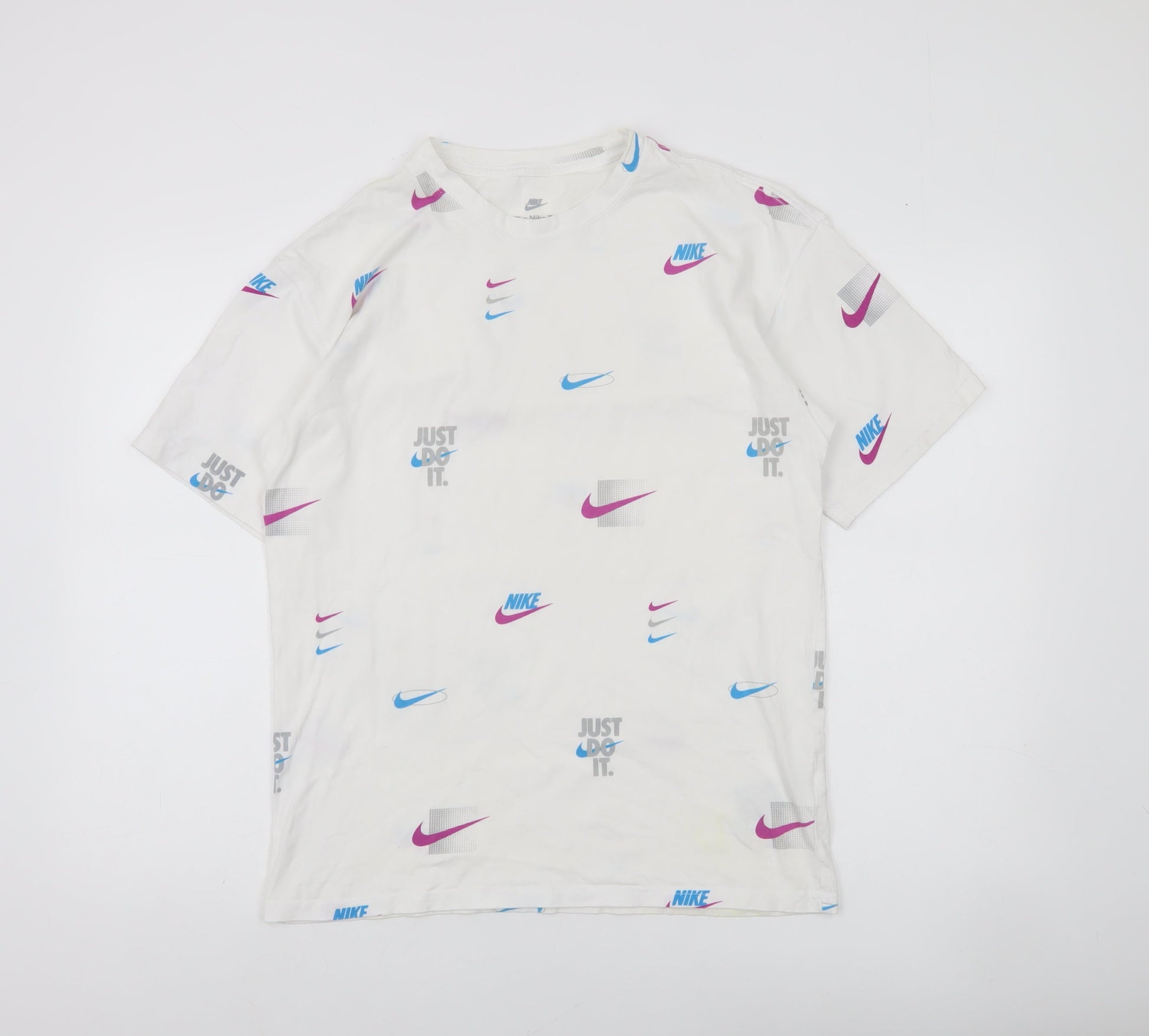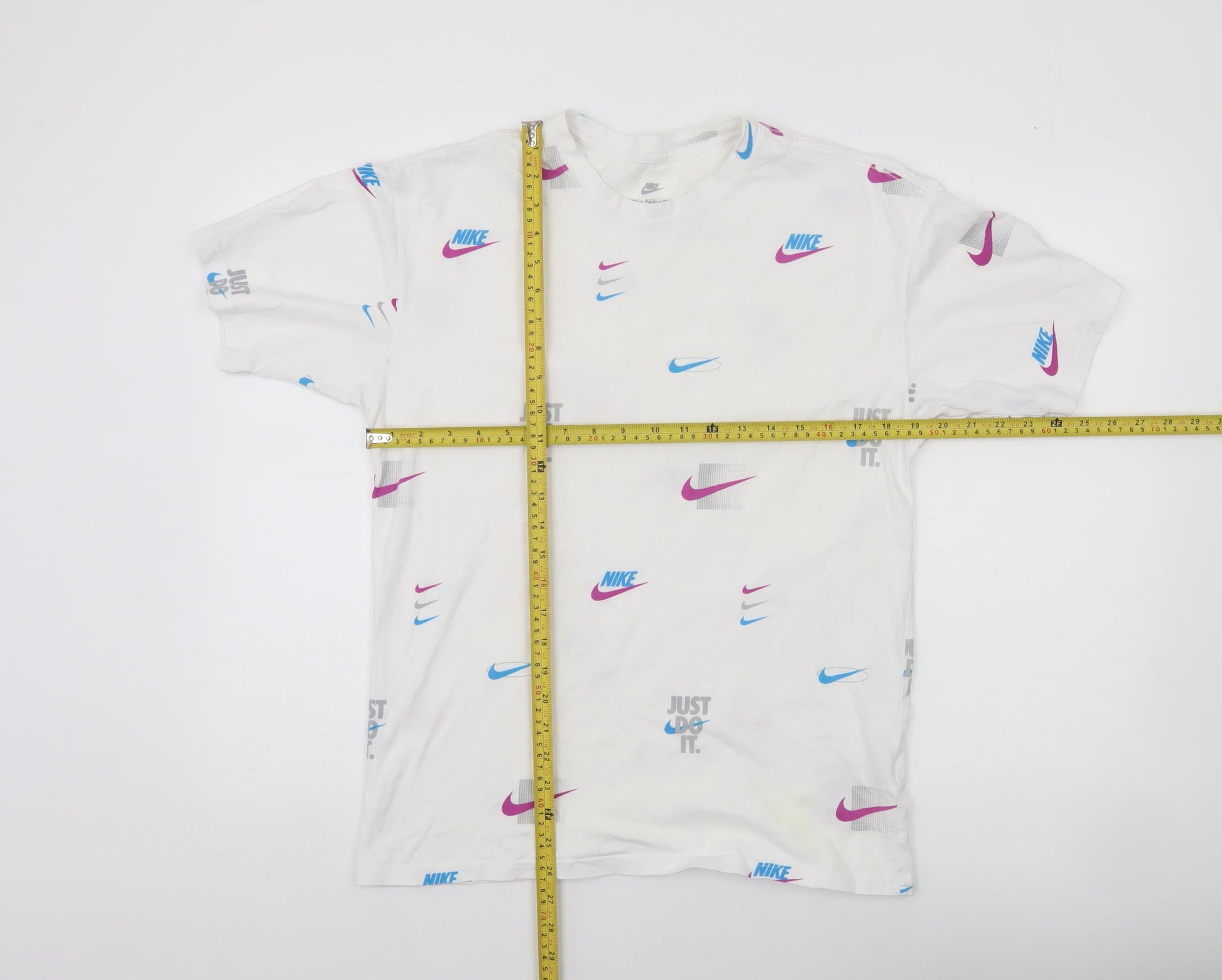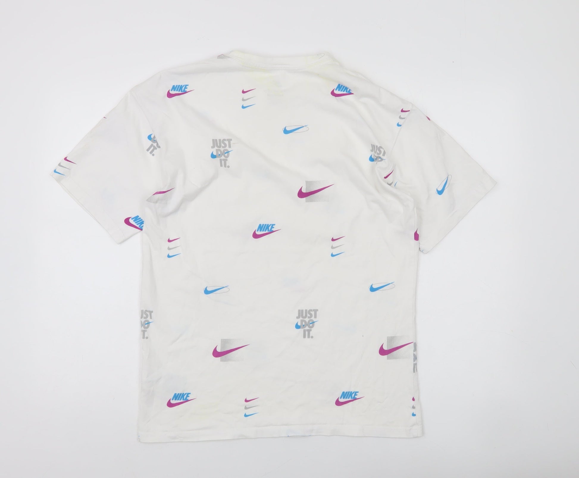 Nike Men's White Loose Fit Graphic Print T-Shirt Small