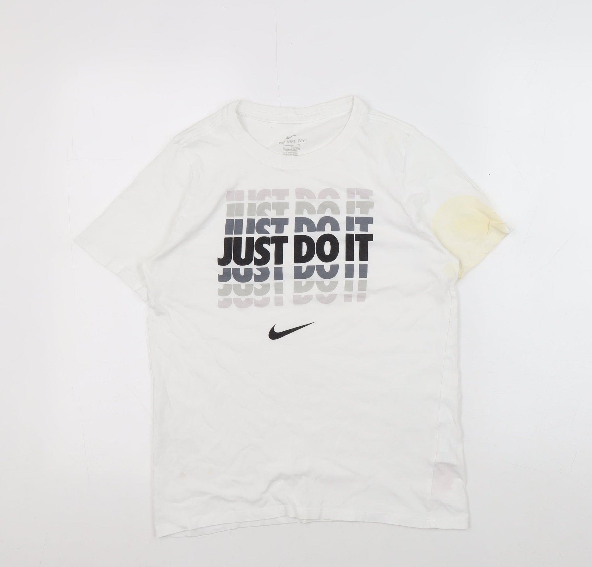 Nike Teens White Cotton T-Shirt, Size 12, Athletic Fit
