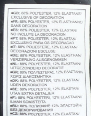 - Material Breakdown: 88% Polyester 12% Elastane
