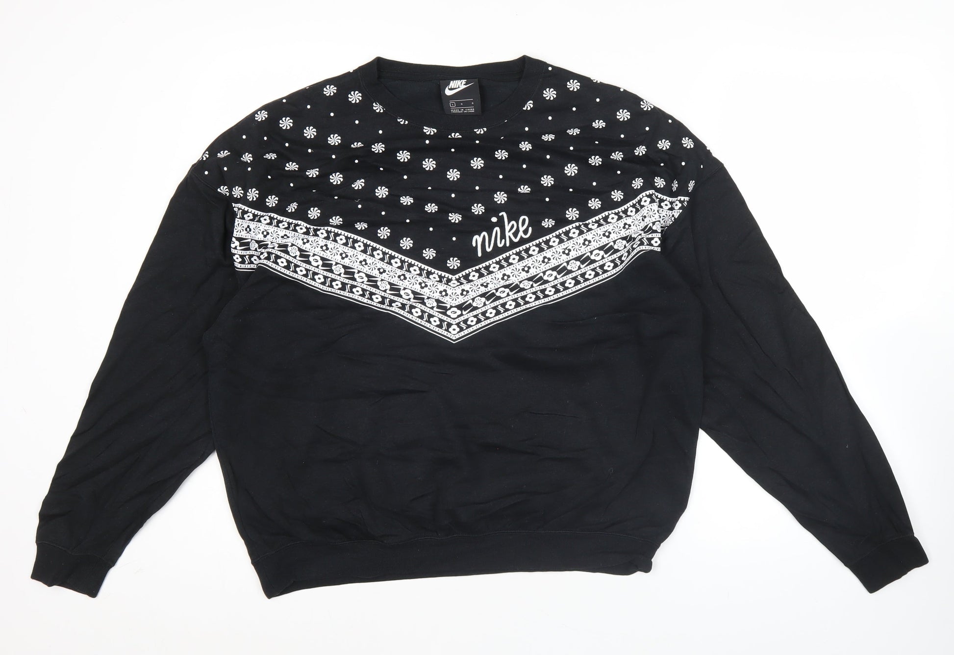 Nike Unisex Black Graphic Pullover Sweatshirt Size L Cotton Blend