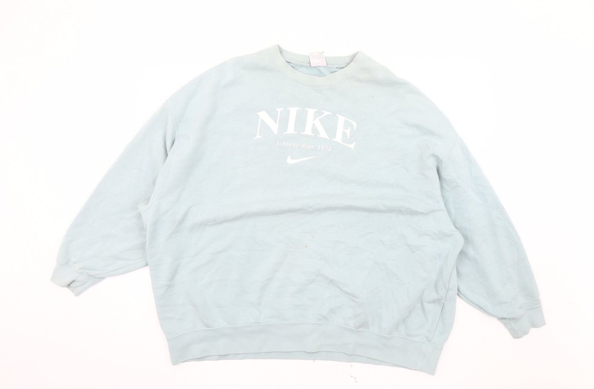 Nike Unisex Blue Pullover Sweatshirt M, Logo Print, Fleece