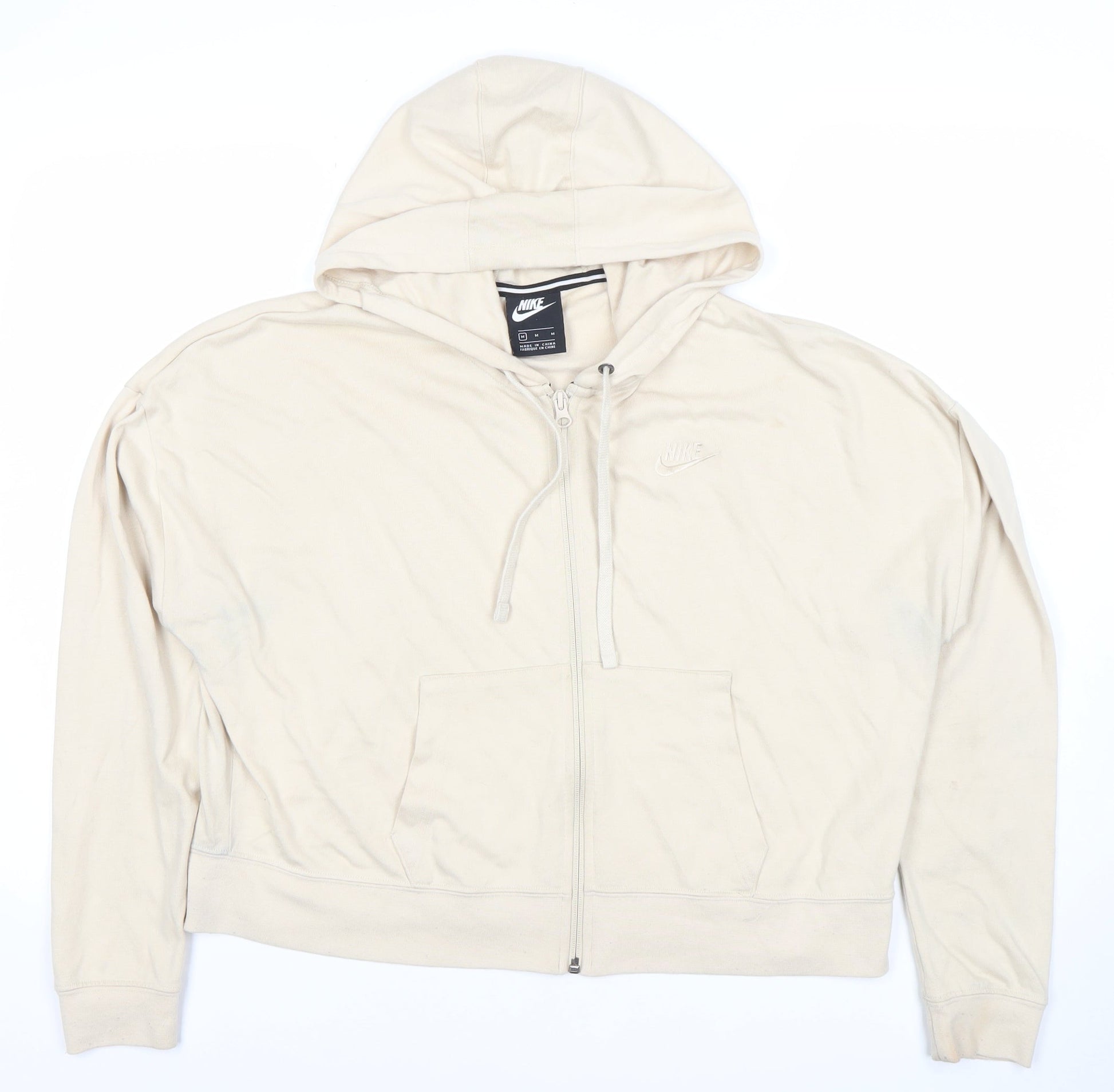 Nike Women Beige Full Zip Hoodie M Cotton Blend Lined Casual