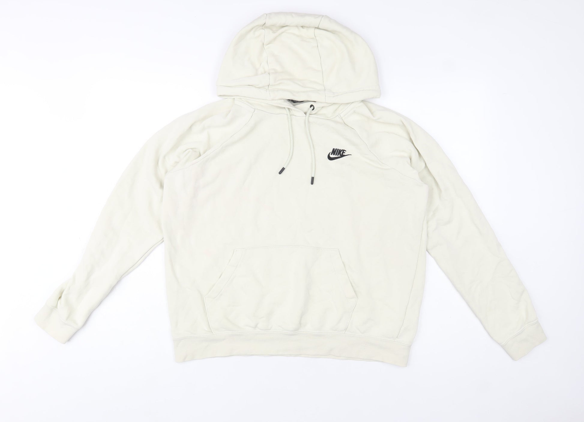 Nike Women Beige Pullover Hoodie Medium Logo Print Casual