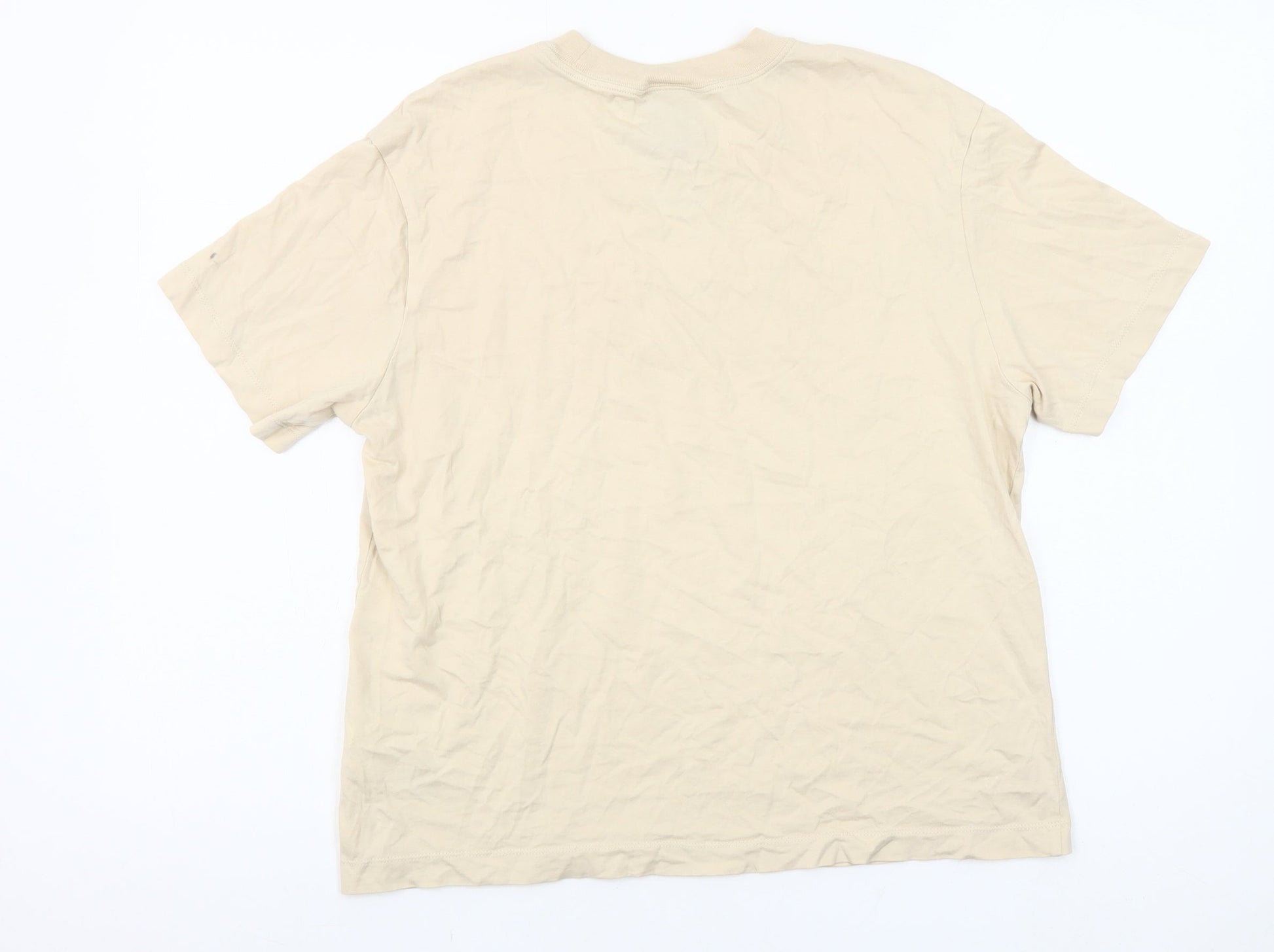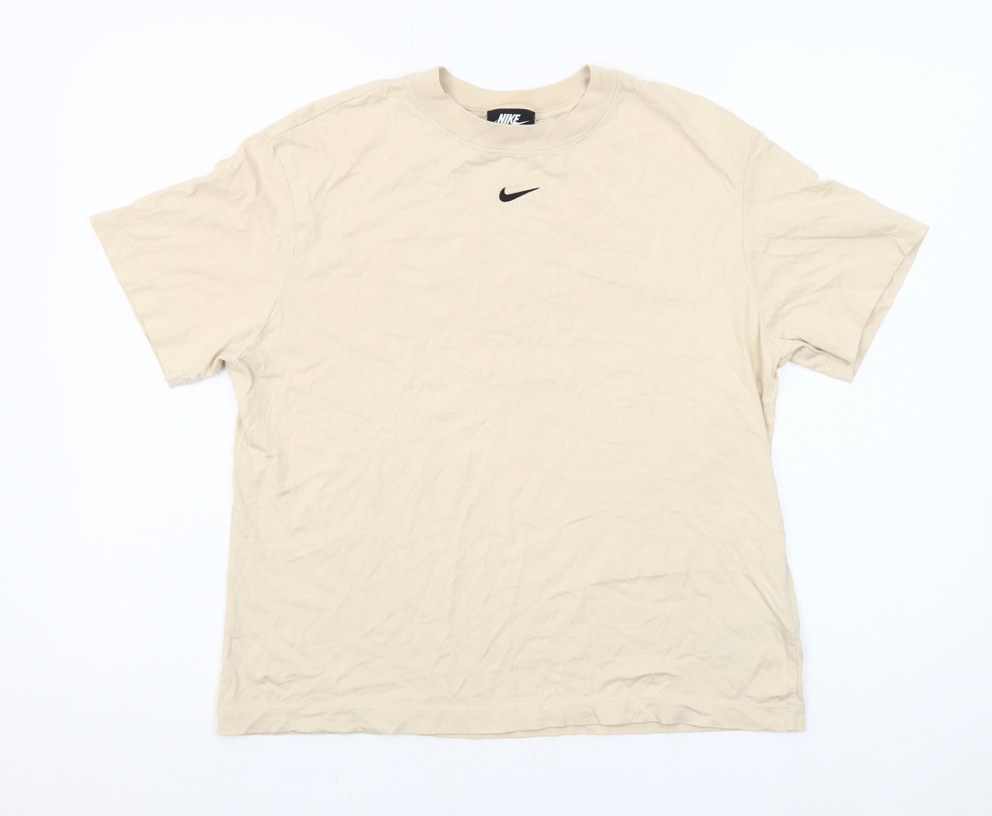 Nike Women Beige Small Basic Cotton Short Sleeve T-Shirt