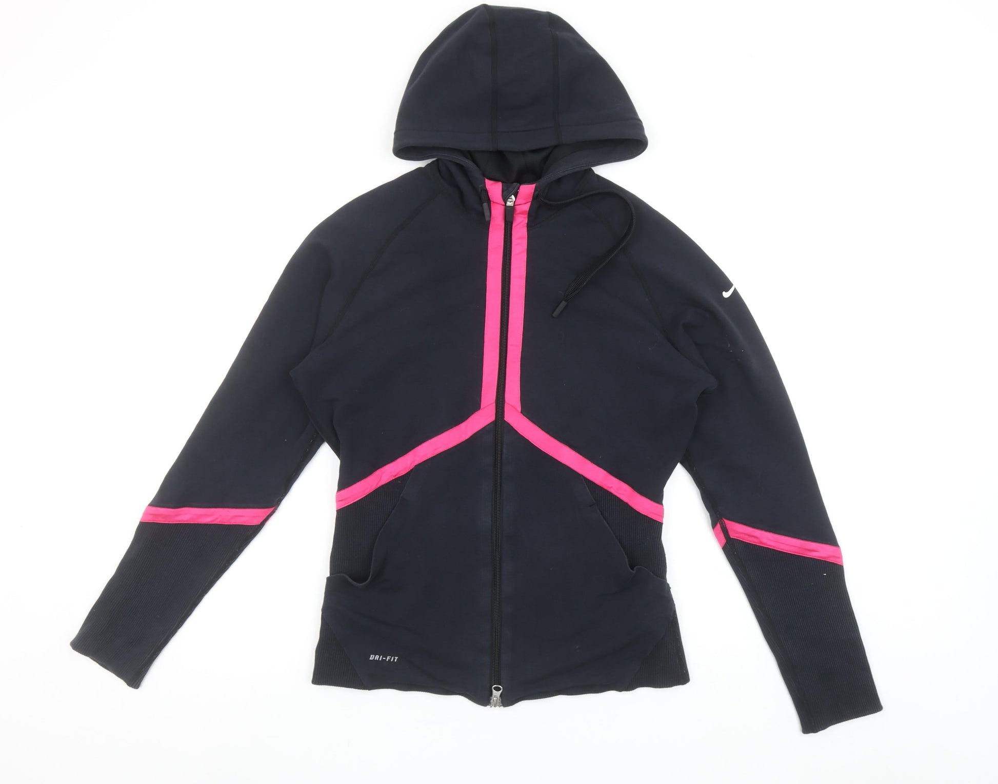 Nike Women’s Black Pink Full Zip Hoodie Size S Dri-FIT Athletic Sweatshirt